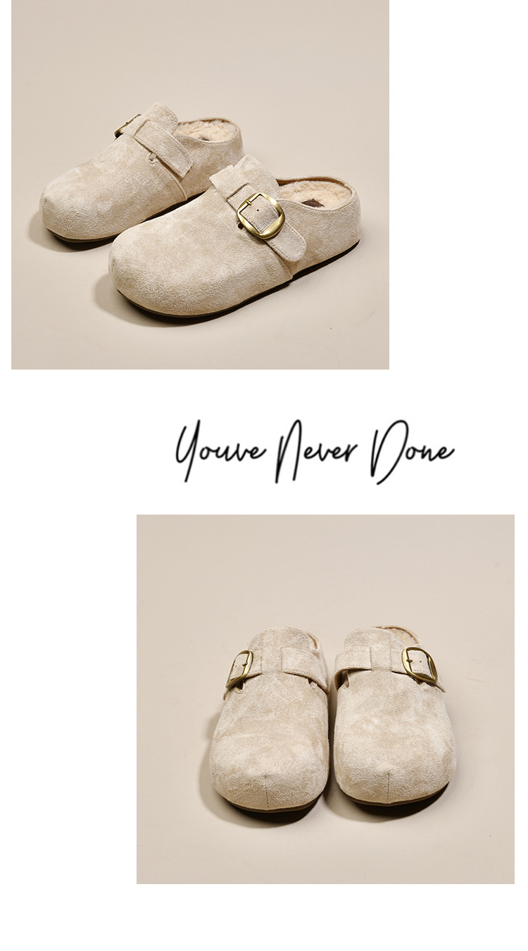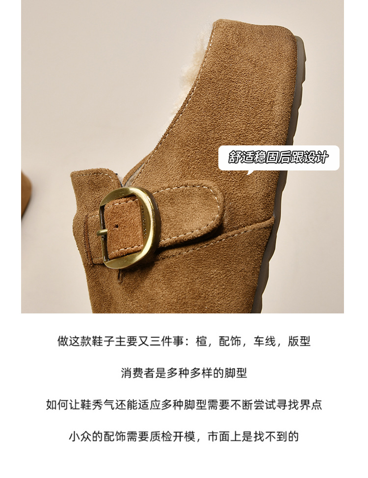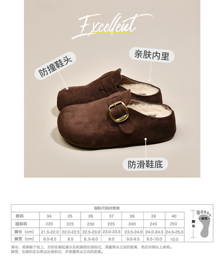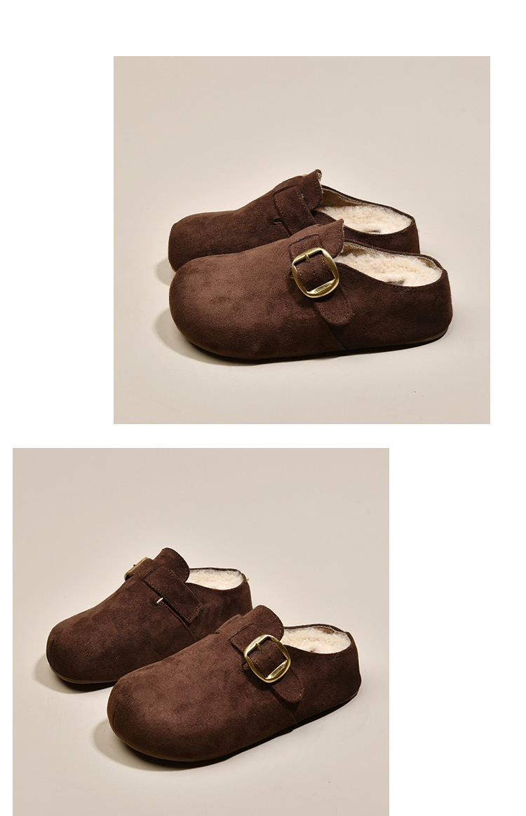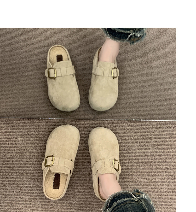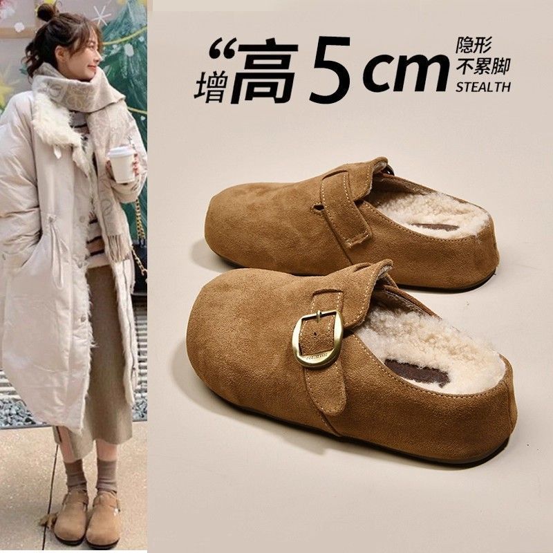 厚底内增高勃肯鞋加绒包头半拖鞋女外穿2025新款秋冬复古毛毛棉拖