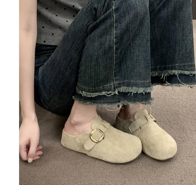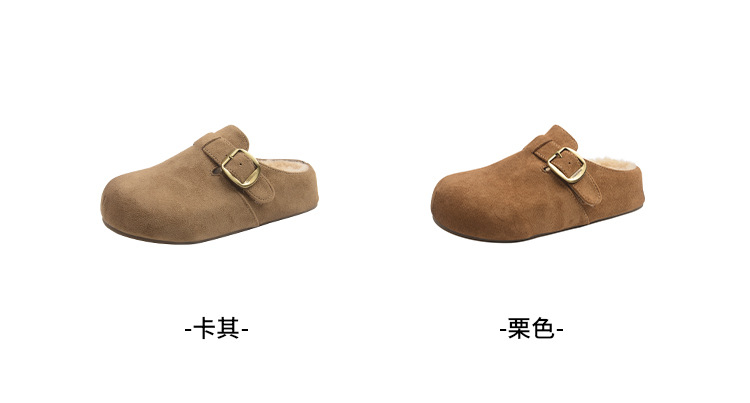 真皮羊羔毛包头半拖鞋女外穿厚底毛毛鞋2025秋冬季新款大头勃肯鞋