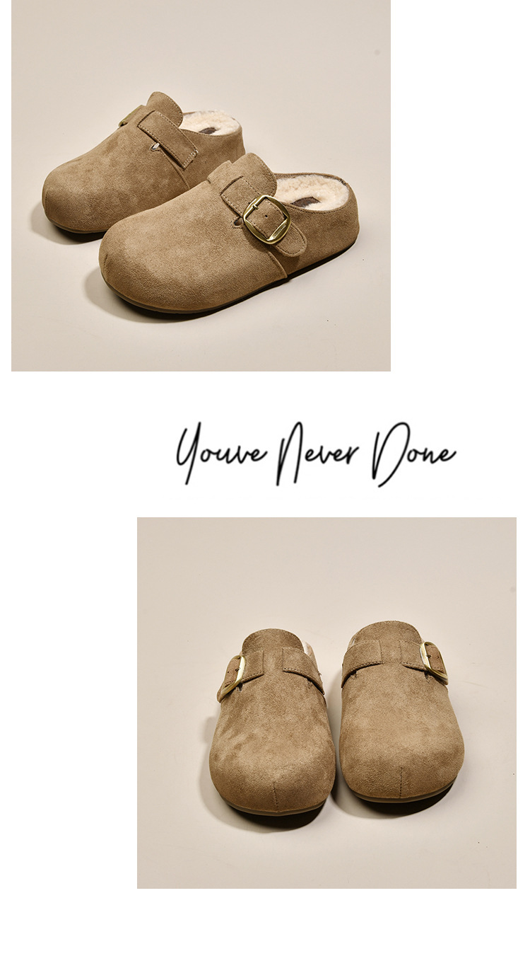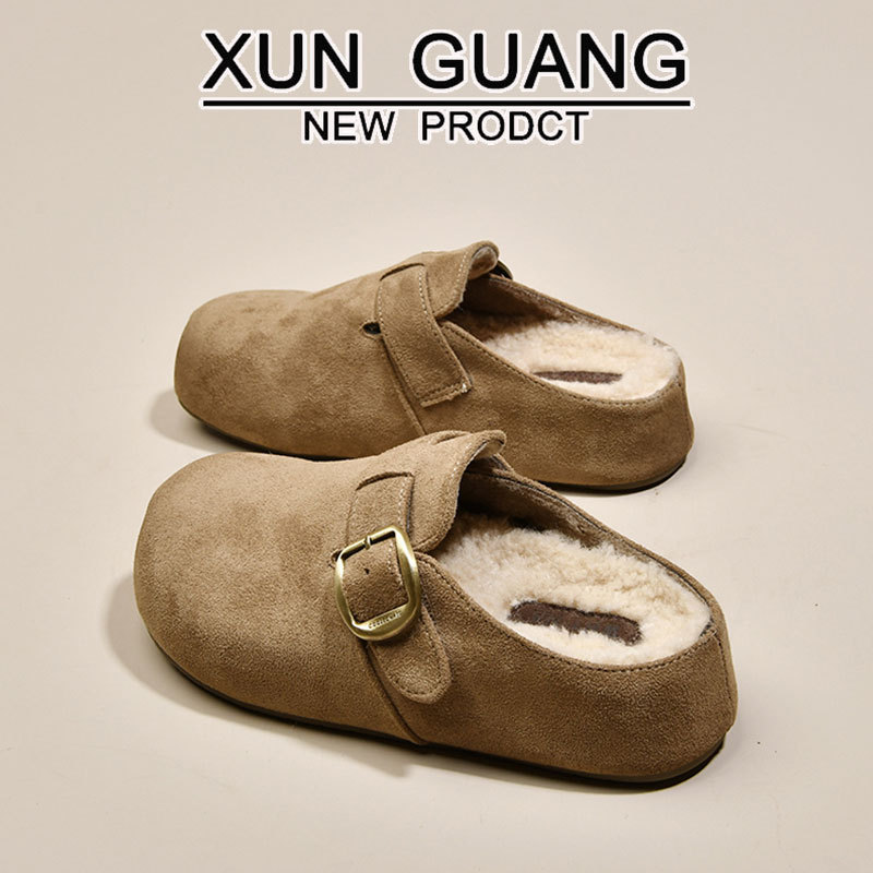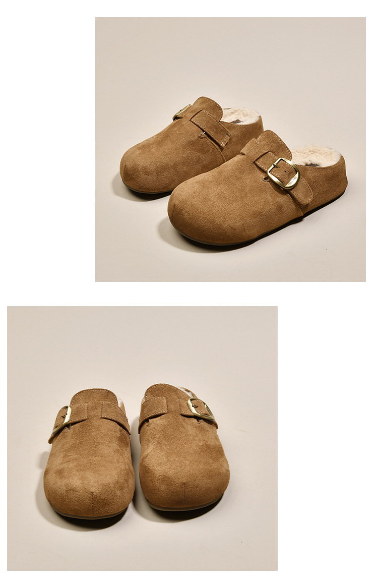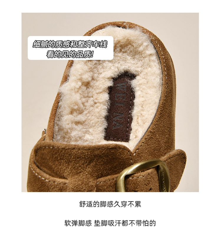 牛皮厚底勃肯鞋女加绒毛毛鞋2025新款秋冬季女鞋子软底包头半拖鞋