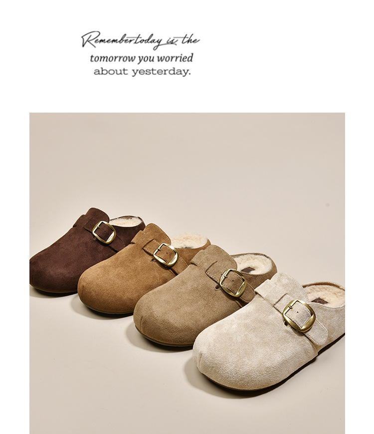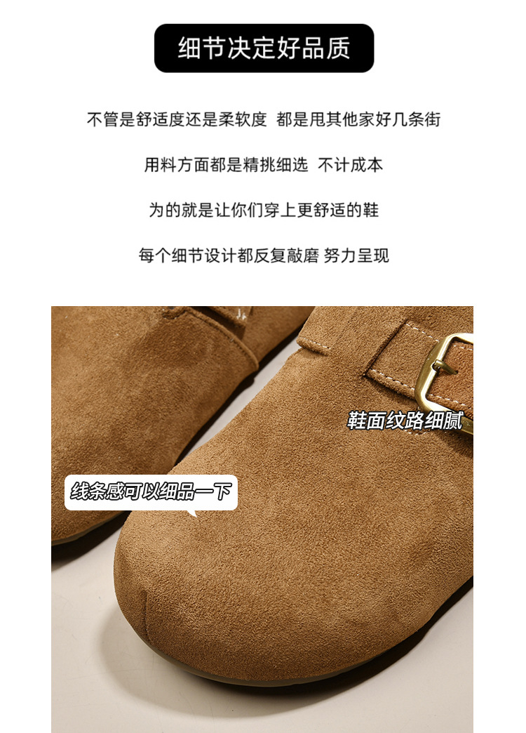 真皮勃肯半拖鞋女鞋2025秋冬新款厚底包头棉拖鞋女外穿加绒勃肯鞋