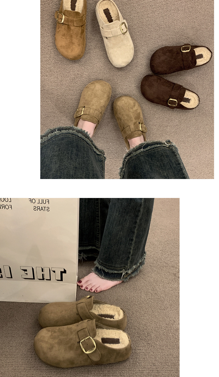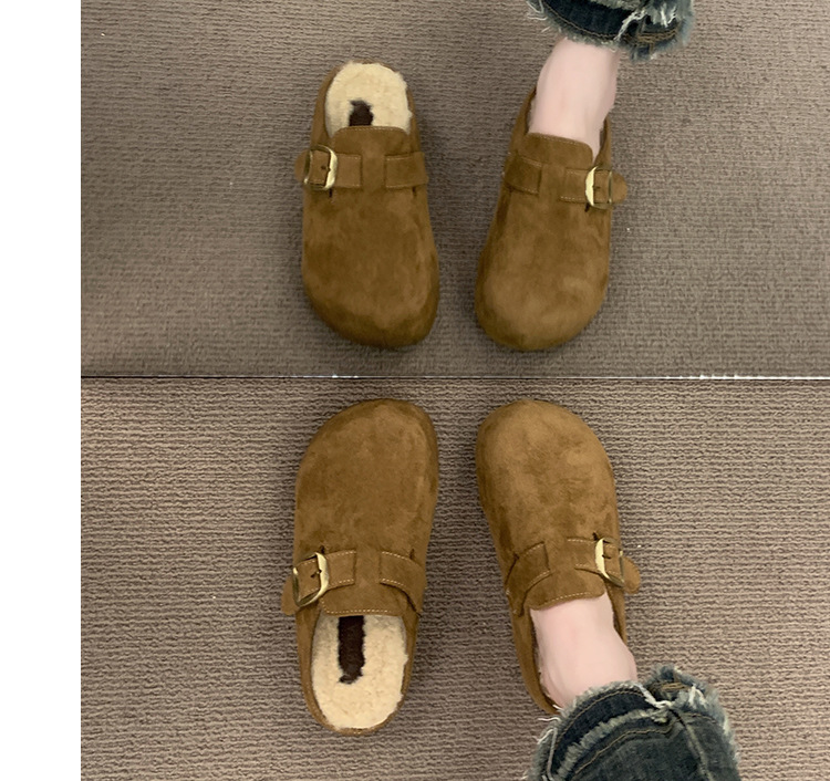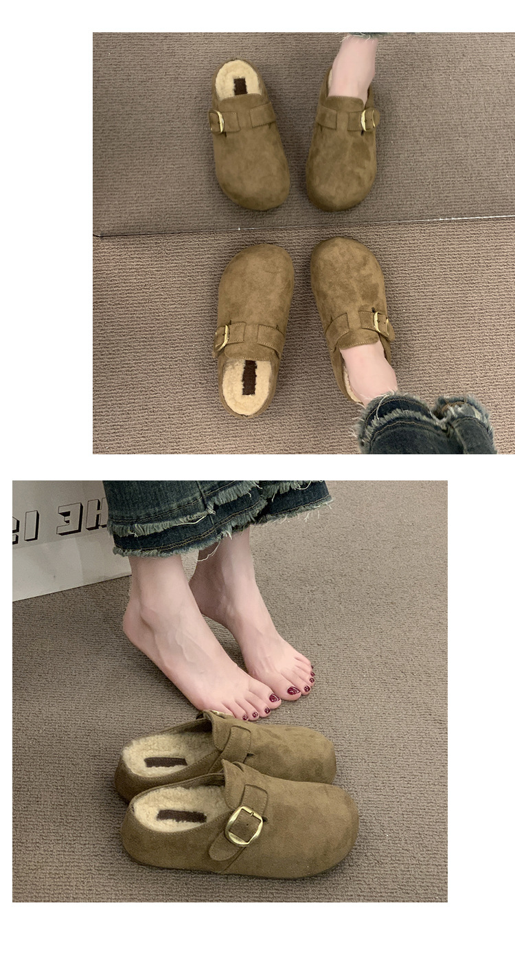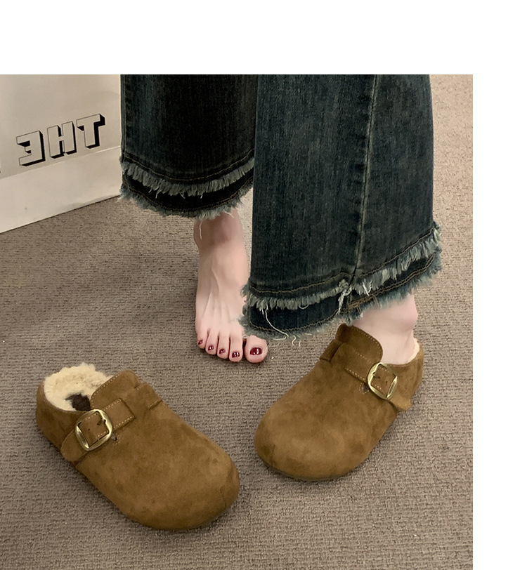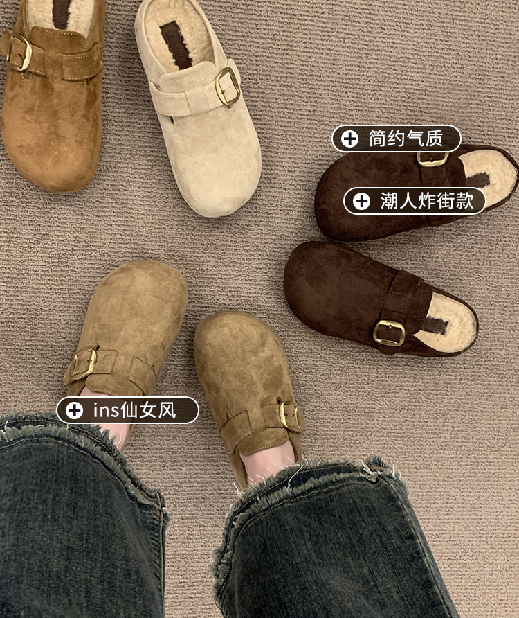 厚底勃肯包头毛毛半拖鞋女外穿2025秋冬季新款复古羊羔毛加绒棉鞋