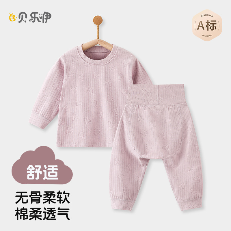 宝宝秋衣套装保暖婴儿内衣纯棉a类男女秋裤儿童家居服睡衣提花
