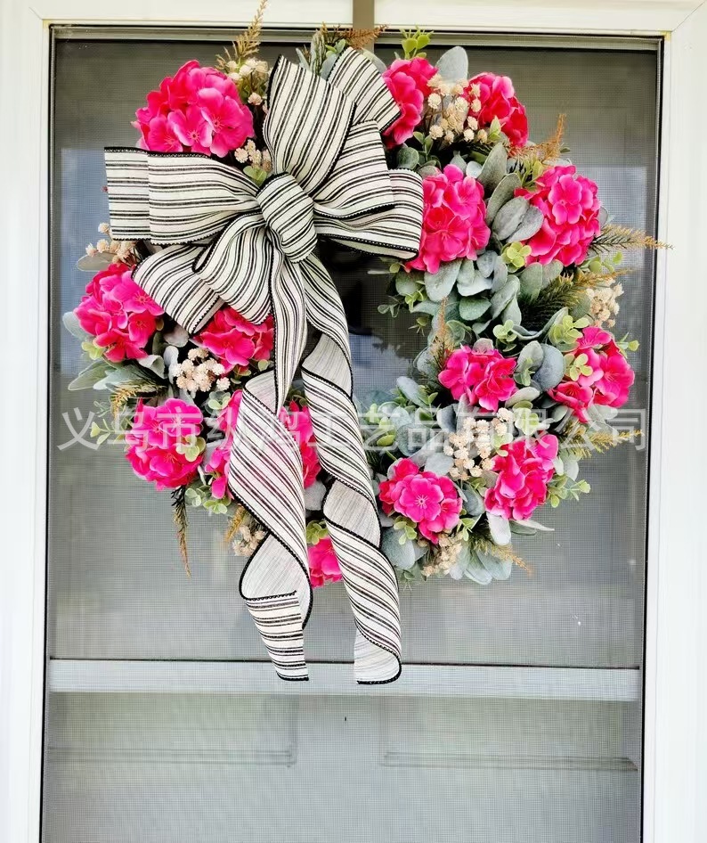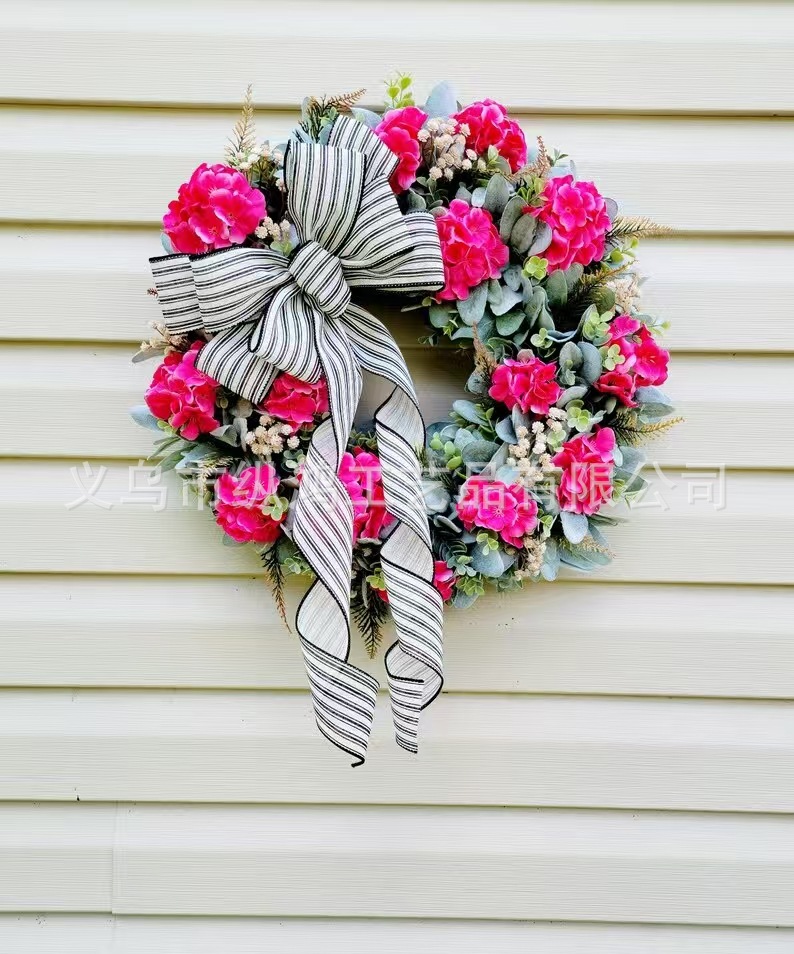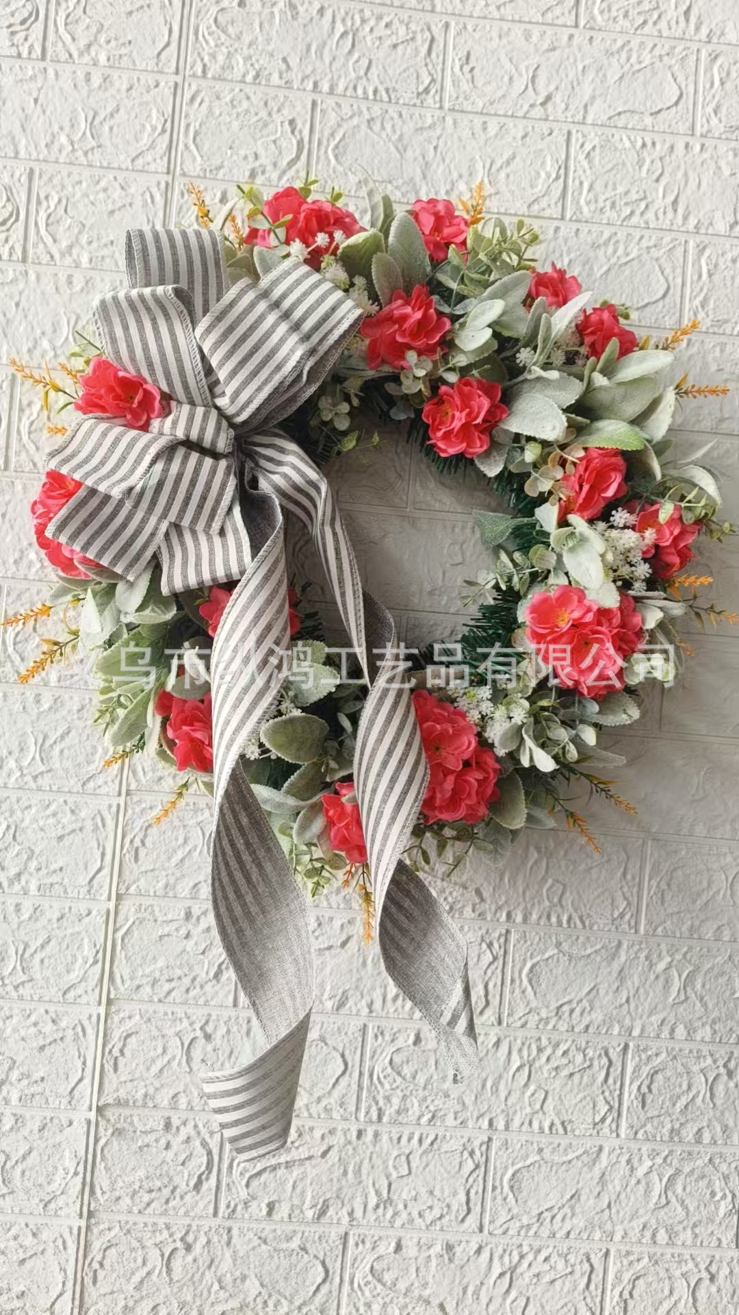 纵鸿新款红花蝴蝶结花环兔耳叶节日门挂仿真花装饰品田园风壁挂