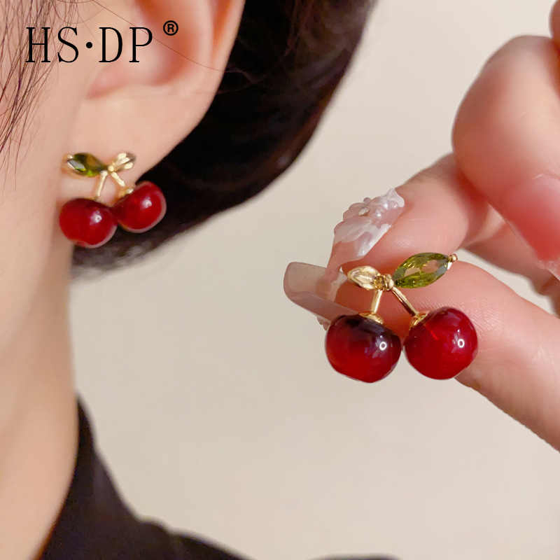 小众时尚甜美百搭红色樱桃耳钉气质轻奢简约小清新设计感耳环批发