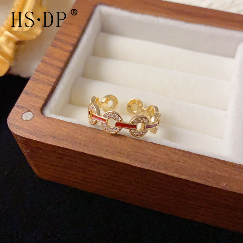 新中式时尚复古独特设计感镶钻铜钱旺财开口戒个性轻奢简约食指戒