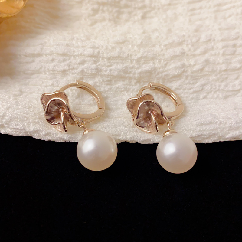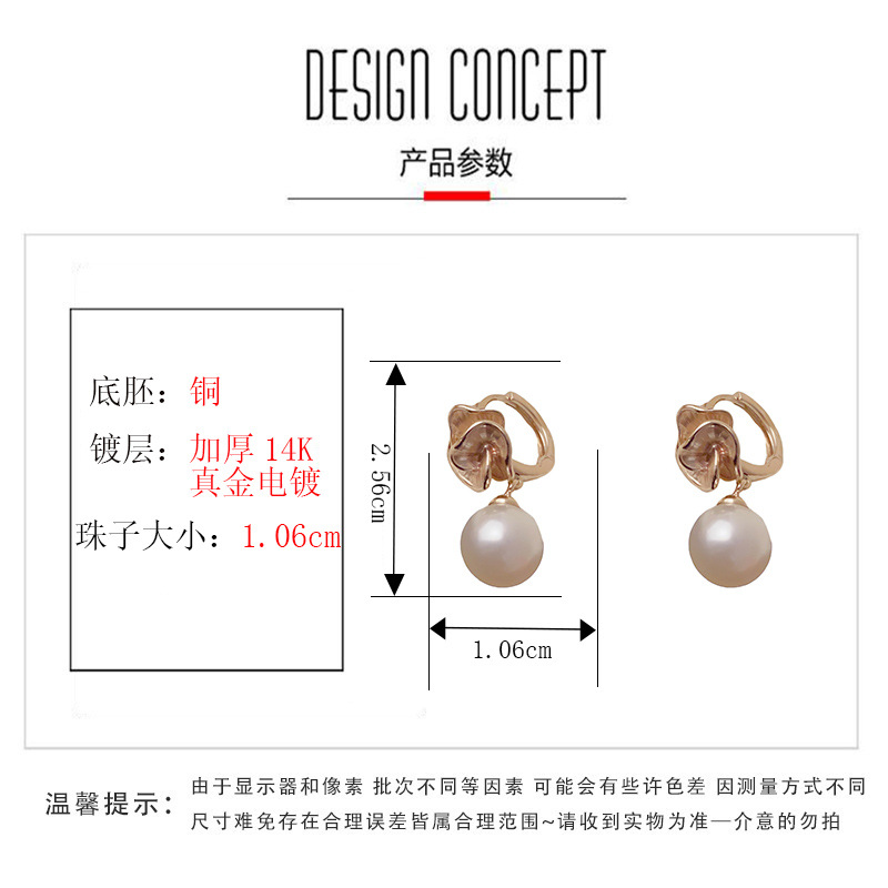 颜色 花瓣珍珠耳坠(加厚真金电镀)