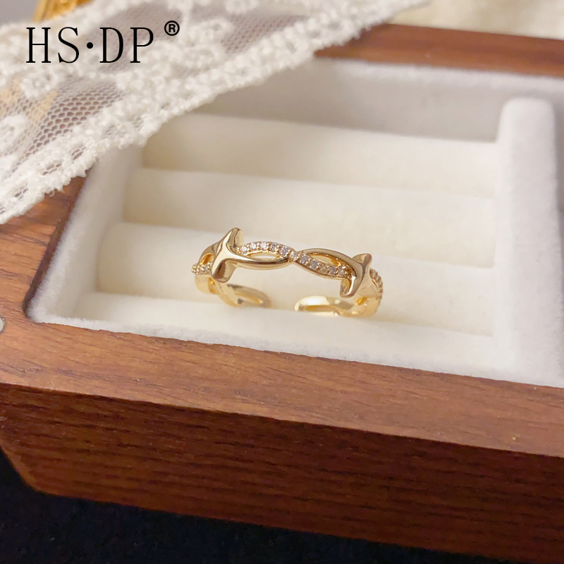 日韩时尚简约镶钻缠绕芒星开口戒个性轻奢百搭设计感可调节食指戒