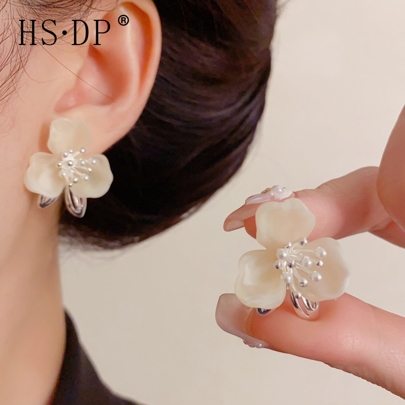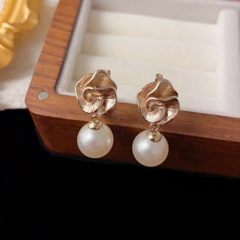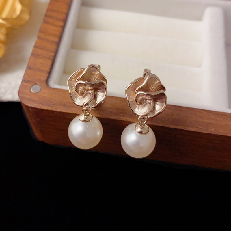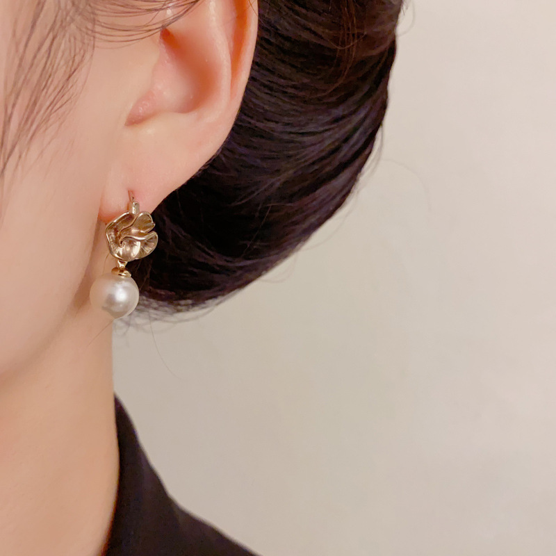 小众时尚设计感花瓣珍珠耳坠女个性轻奢复古简约独特高级耳扣批发