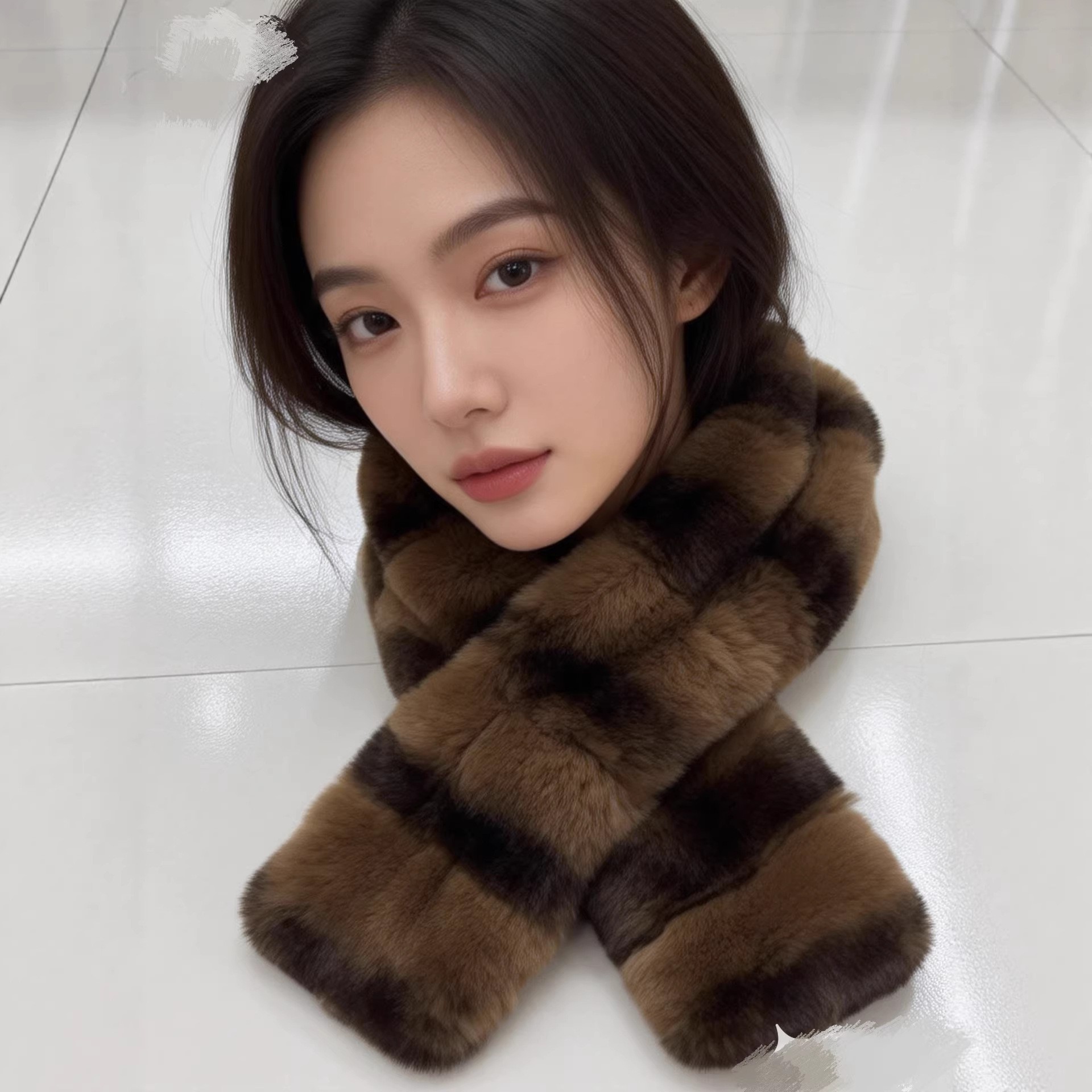 冬季獭兔毛仿龙猫加厚保暖双面女生百搭柔软护颈气质高级毛毛围脖