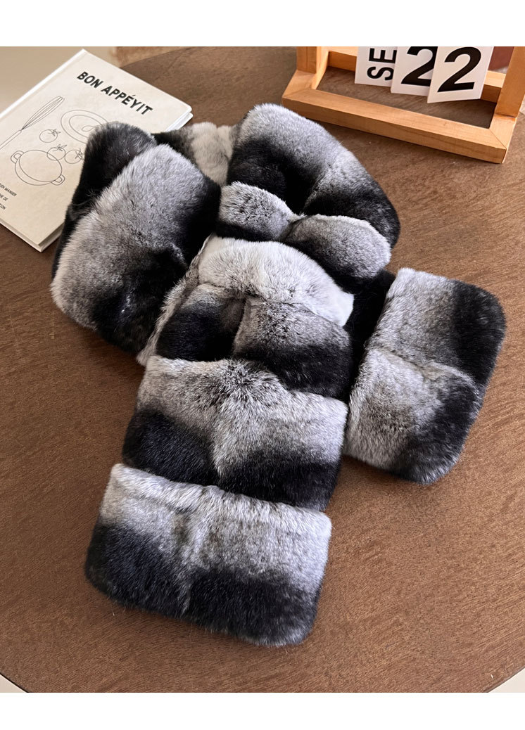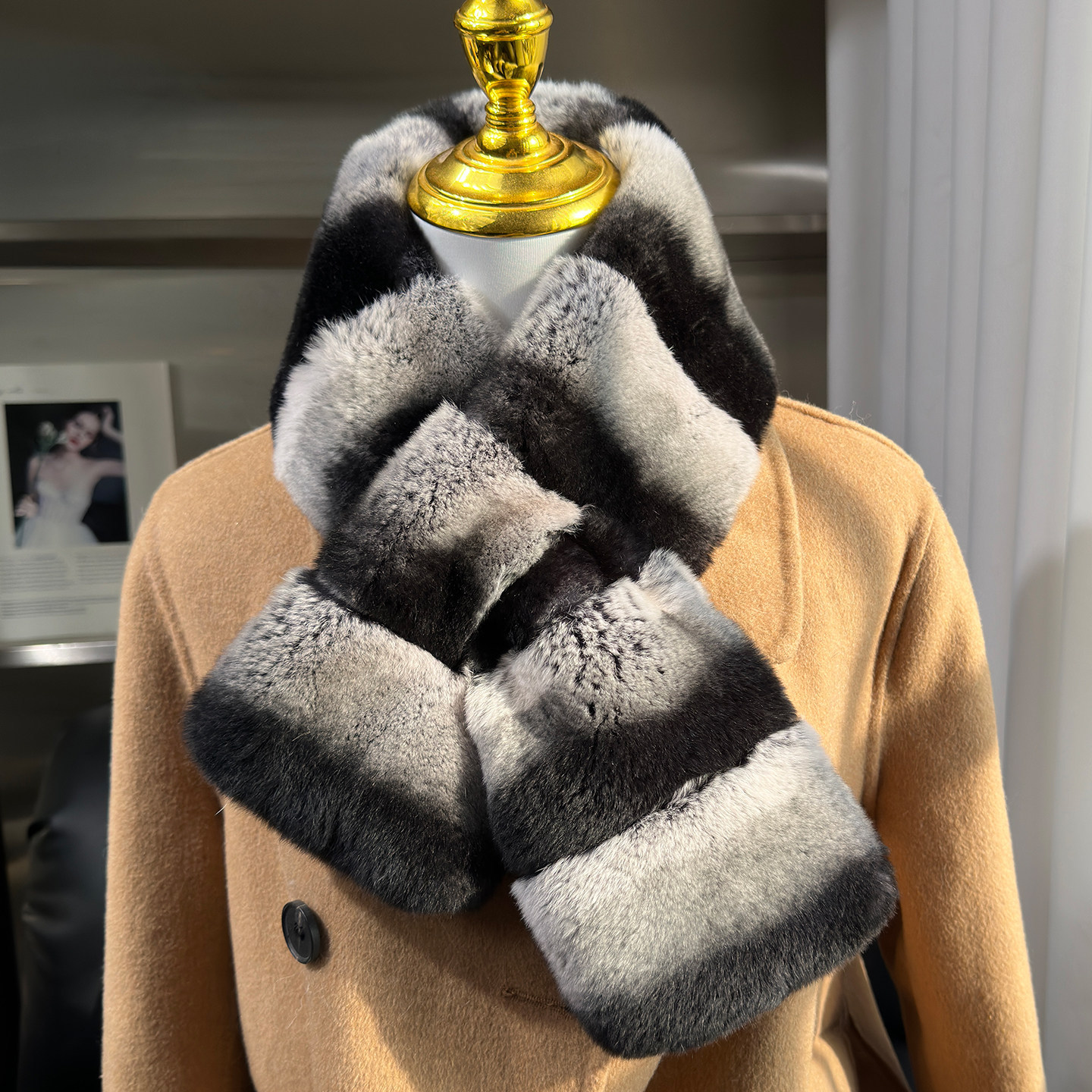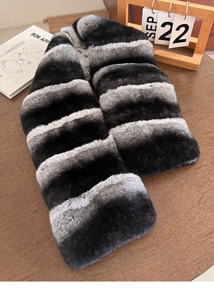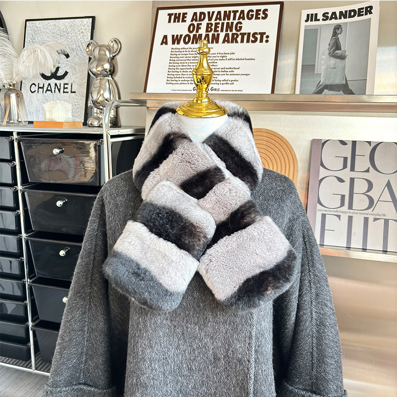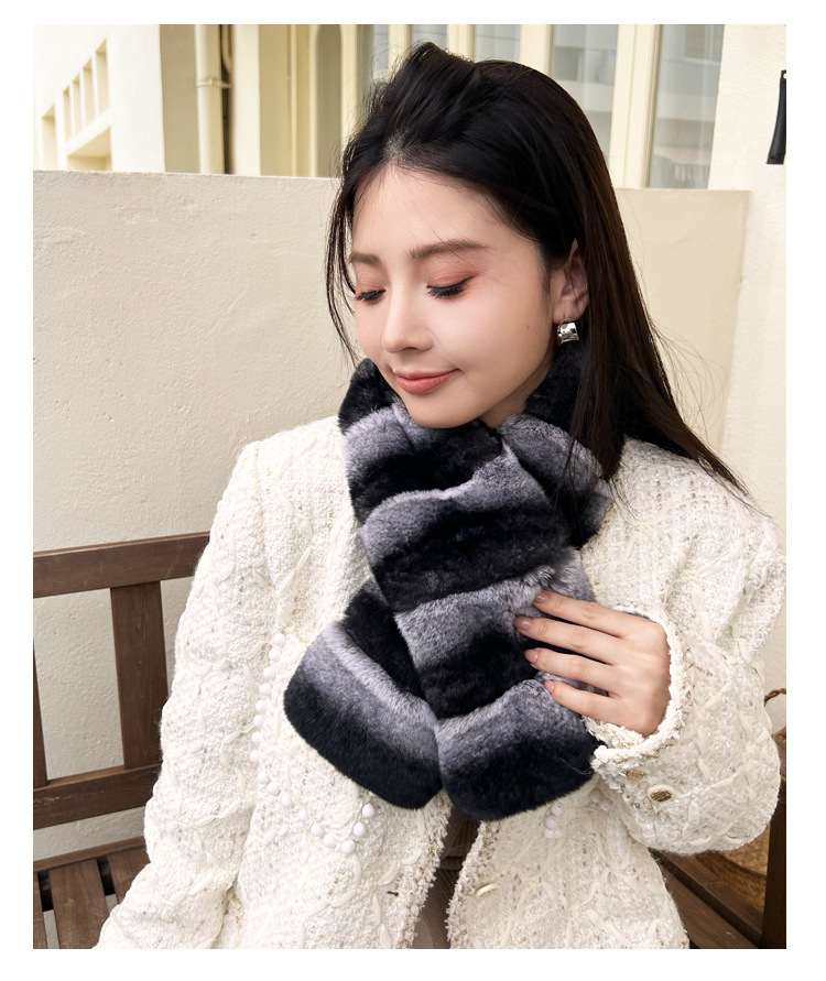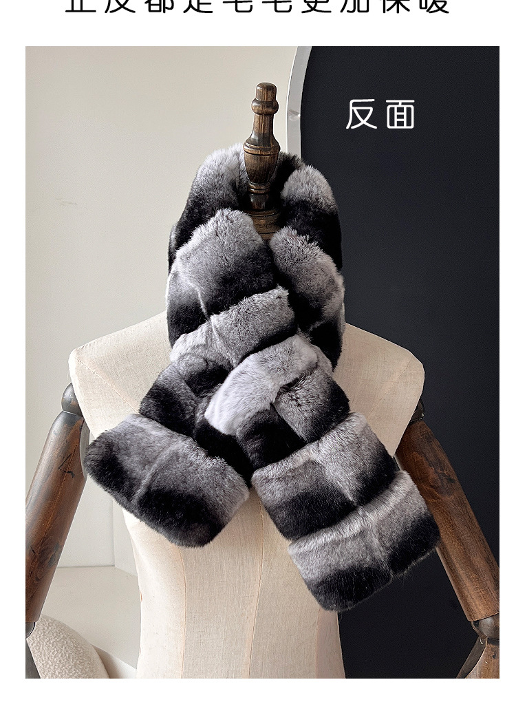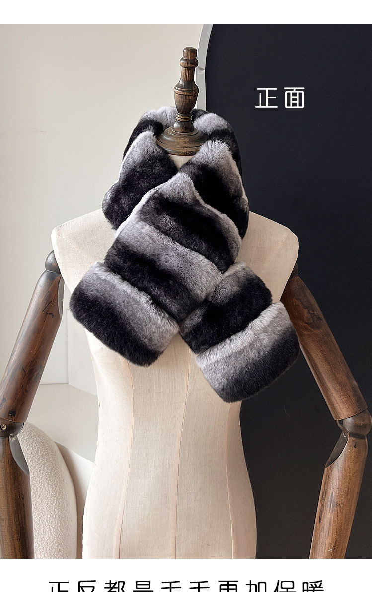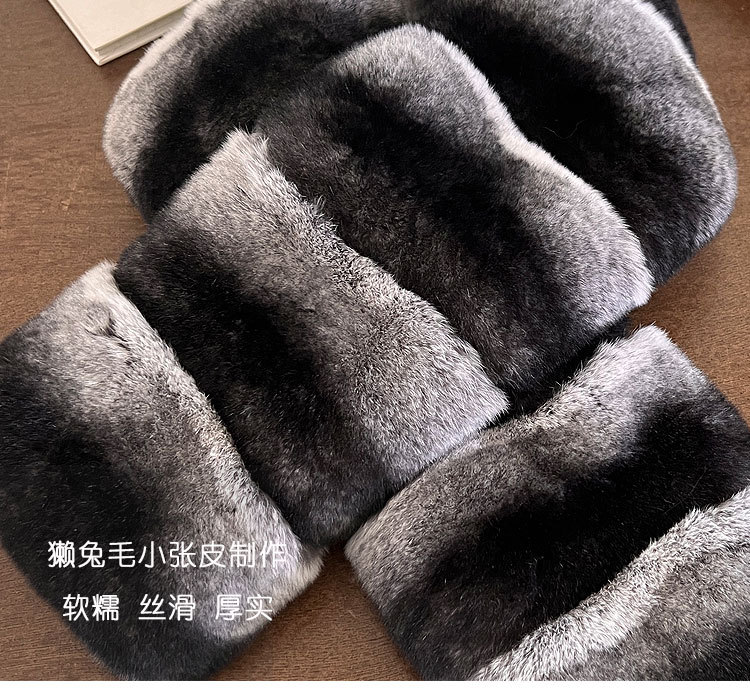 真獭兔毛皮草围巾青紫蓝龙猫原色黑白条纹冬季保暖男女款围脖