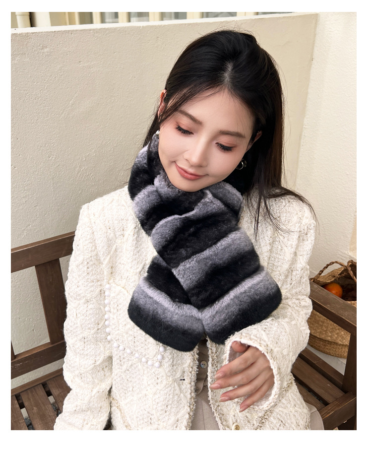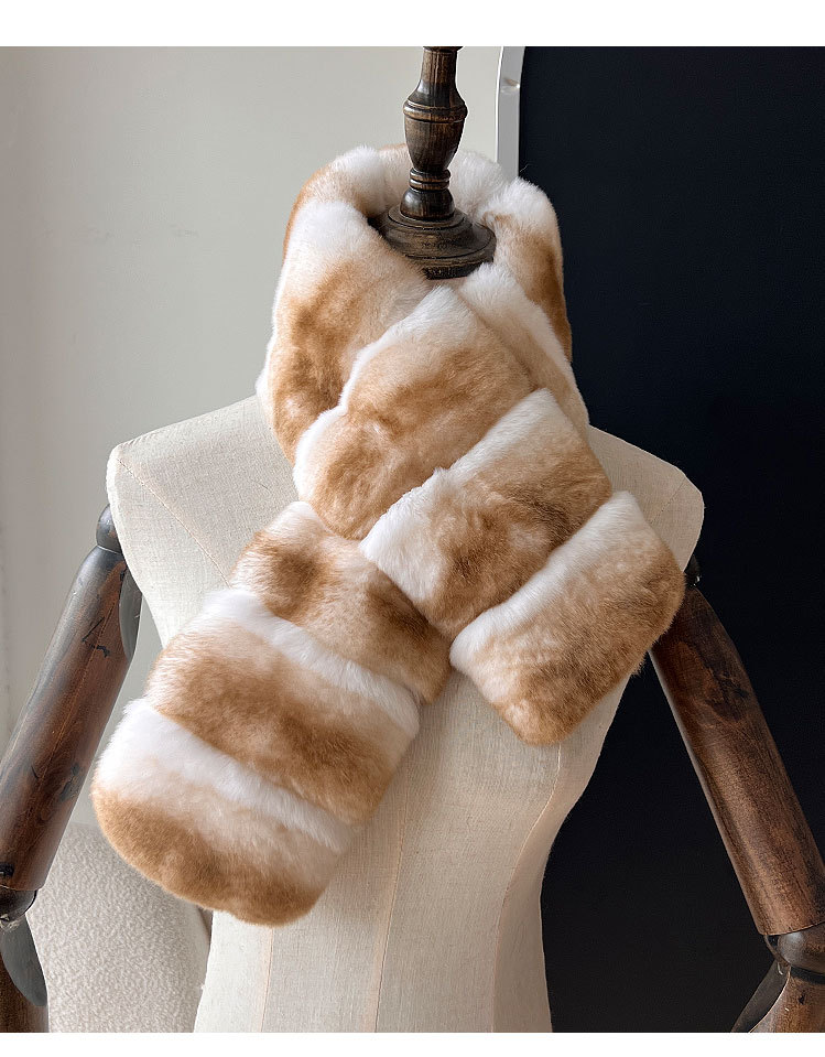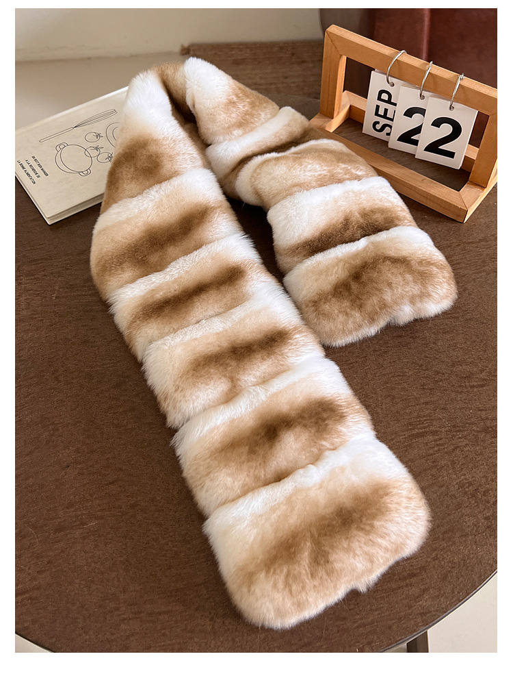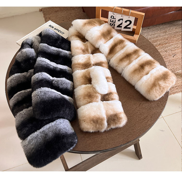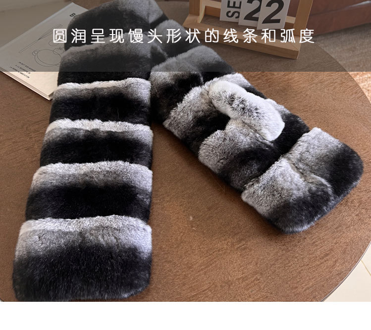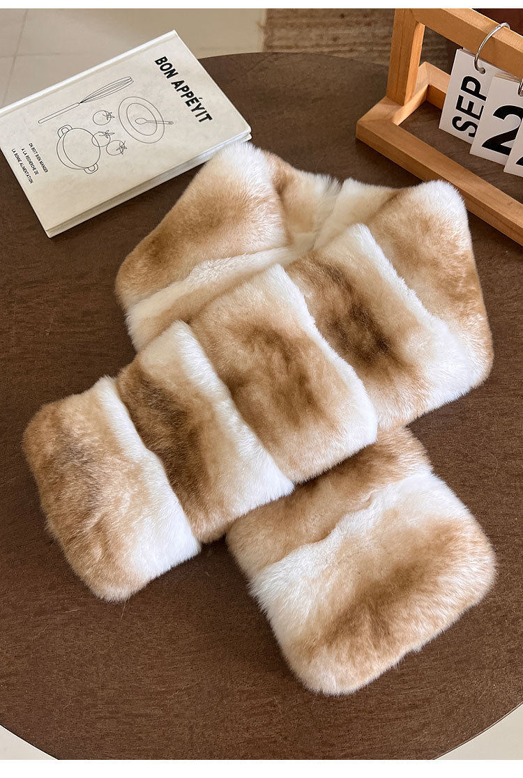 新款獭兔毛整皮双面围巾冬季保暖新款定染渐变色兔毛围脖百搭时尚