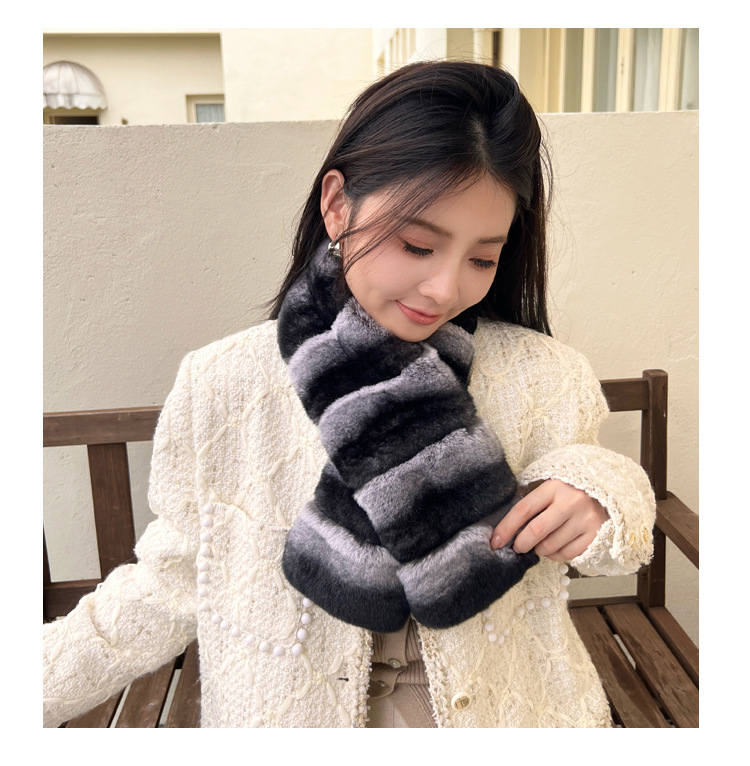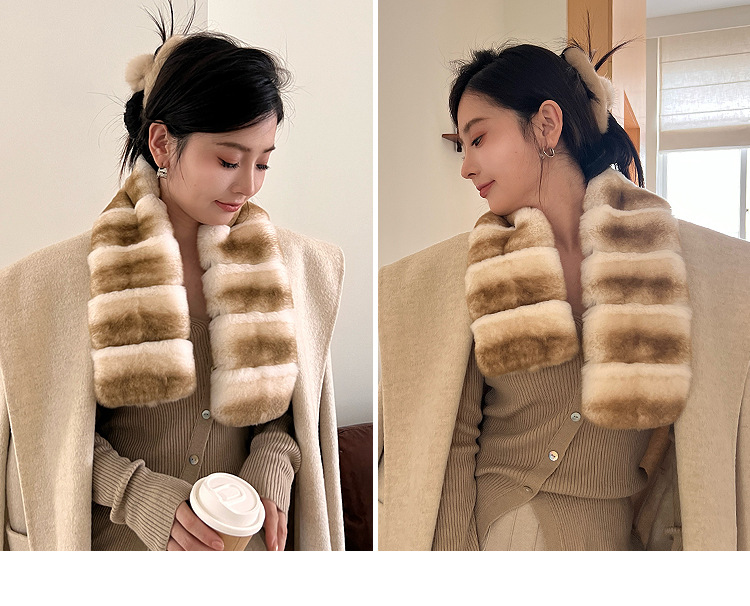 冬季新獭兔毛围巾气质百搭真毛毛领子保暖皮草围脖仿龙猫围巾女式