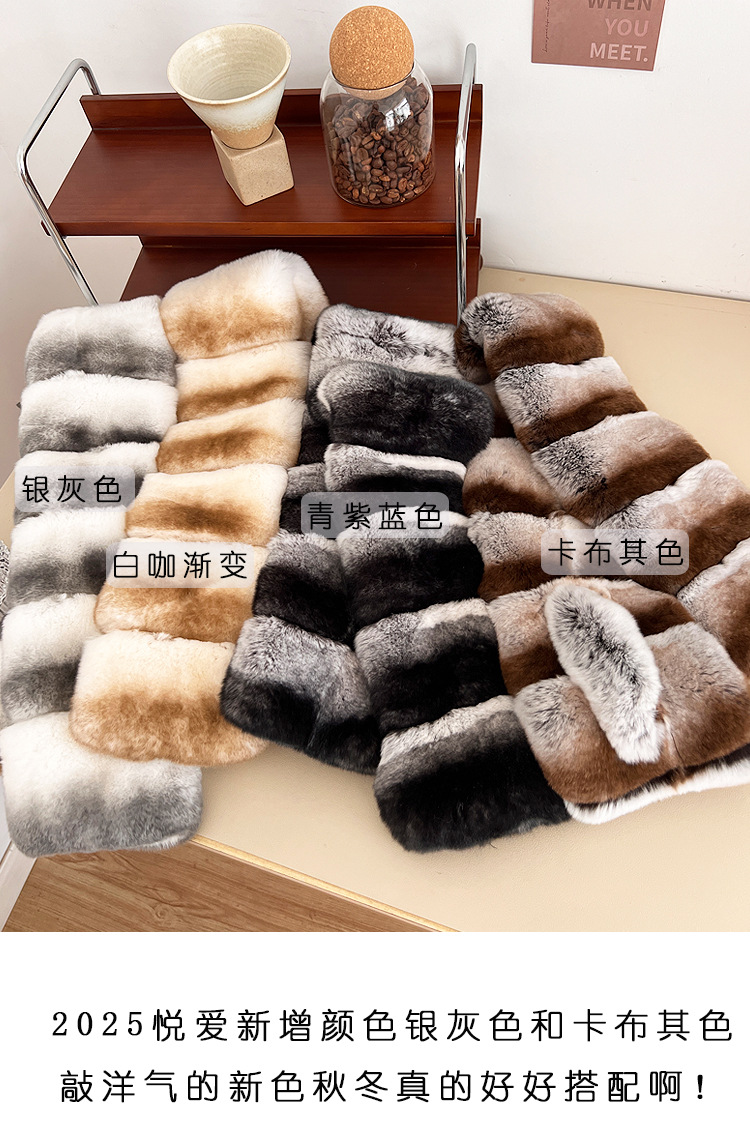 真獭兔毛皮草围巾青紫蓝龙猫原色黑白条纹冰激淋色保暖男女款围脖