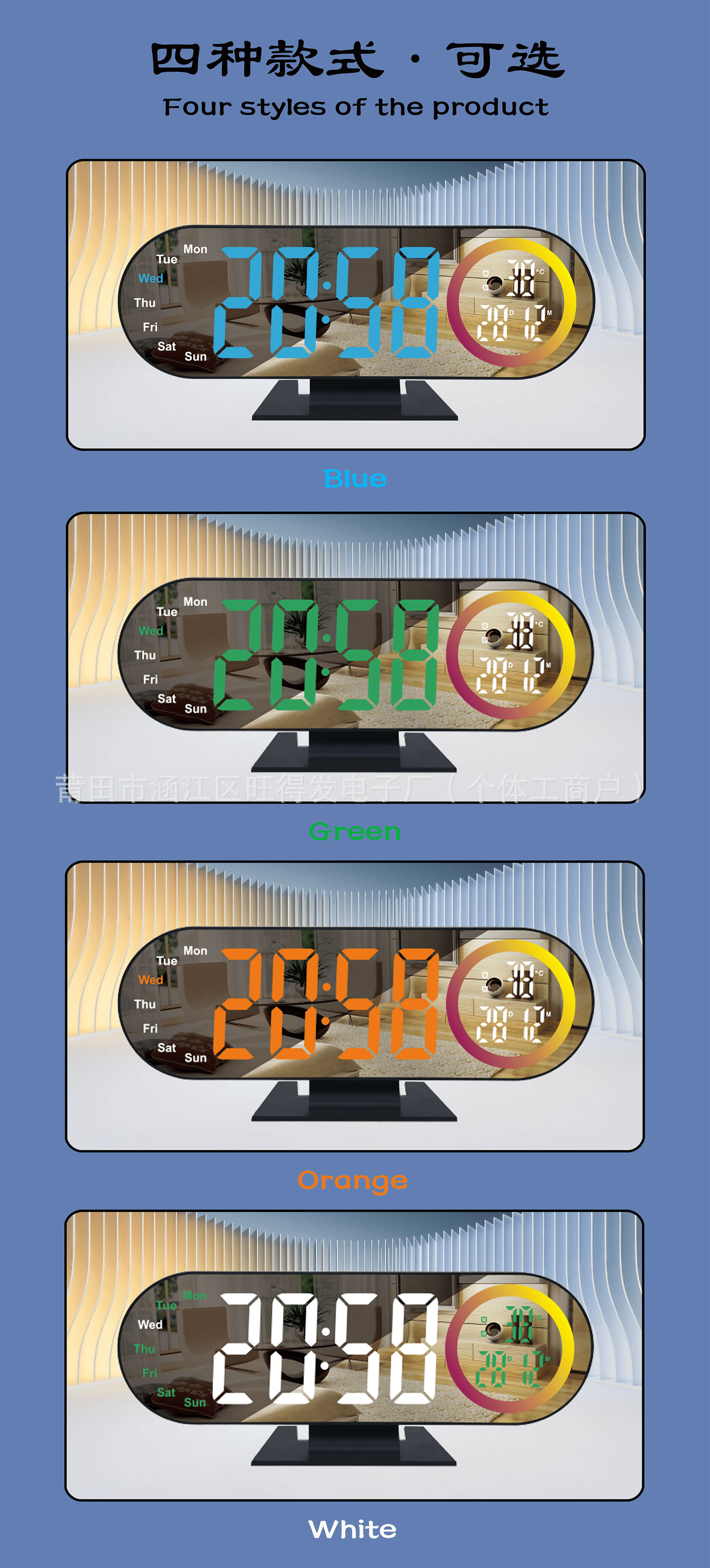 RGB闹钟大屏数字镜面电子时钟 跨境创意LED幻彩新品闹钟学生台钟