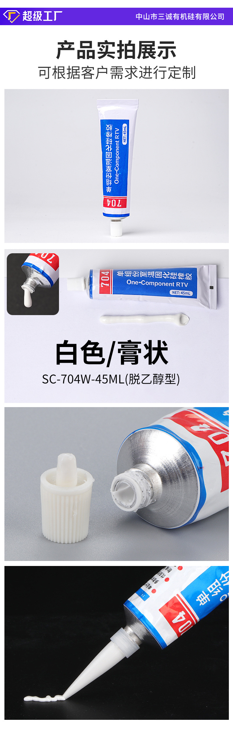 704硅橡胶通用型绝缘粘接电器电机白色耐高温胶单组份电子密封胶