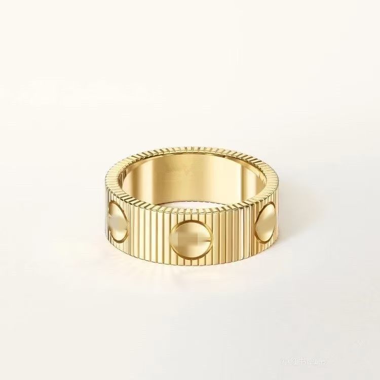 新款高版本CNC18K玫瑰金设计表带戒指女条纹经典螺钉情侣钛钢对戒