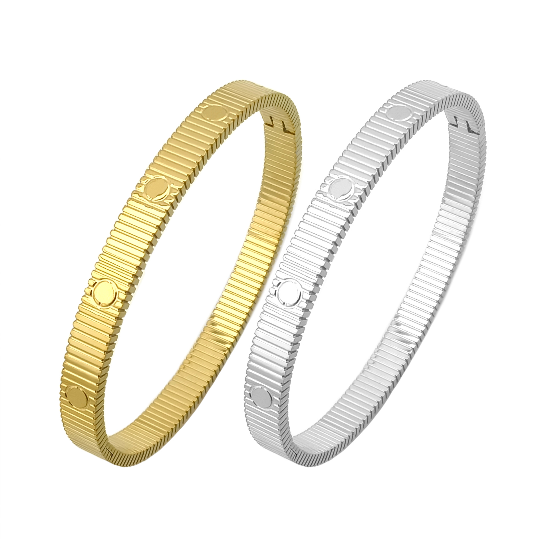 K加跨境新款时尚不锈钢卡扣手镯18k不掉色格子段子表带手饰几何