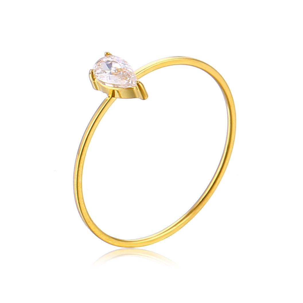 跨境不掉色饰品高级感轻奢水滴锆石钛钢戒指18k金不锈钢镶石指环