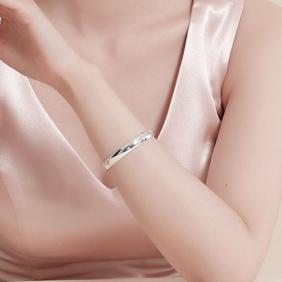 999純銀の女性の光沢のシンプルな閉口円中実素輪銀ブレスレットプレゼントブレスレット