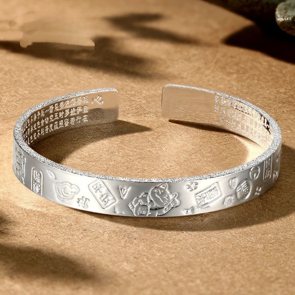 7237号足銀999.9口吉言招財猫側辺フロストブレスレット中実ブレスレット直播起爆金
