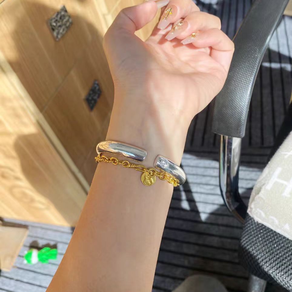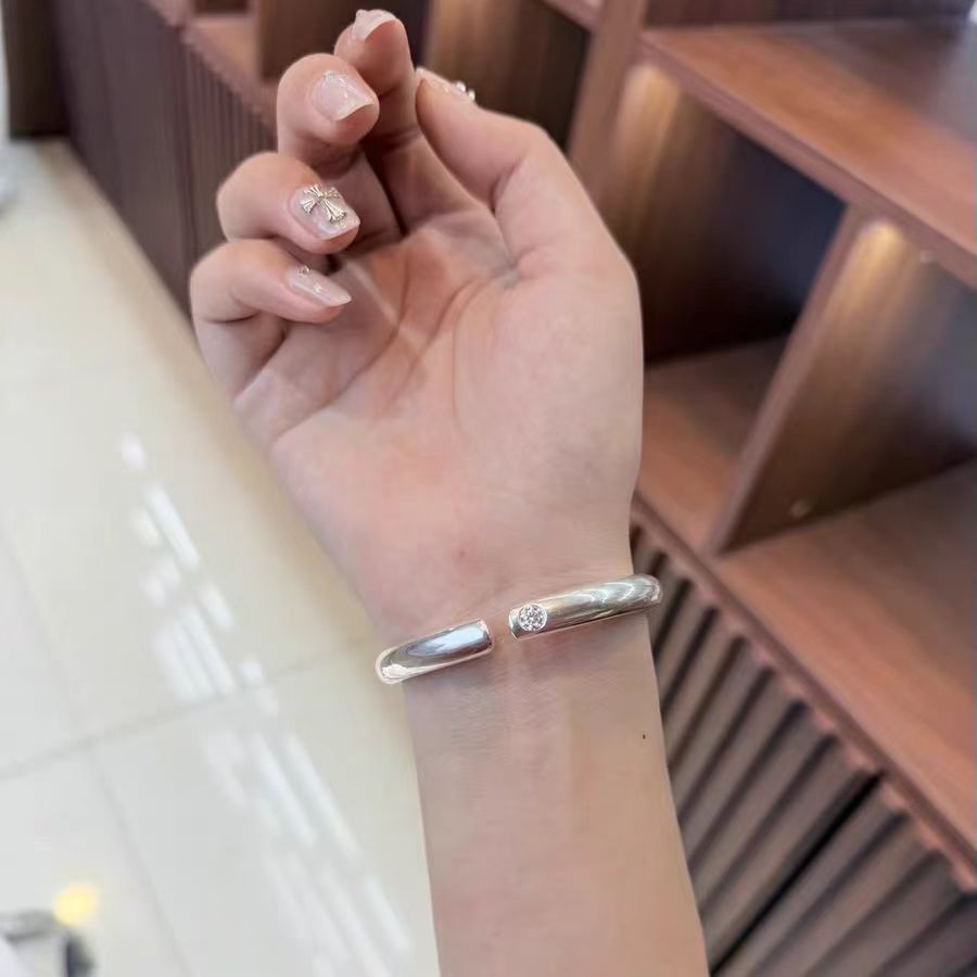 8854号足银999.9点钻泥鳅背开口手镯小众设计气质轻奢节日礼物