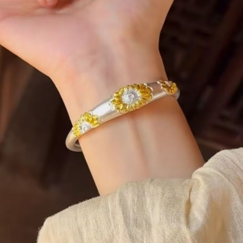8508号足银 999.9金灿灿向日葵手镯55g高级新中式太阳花民族风手