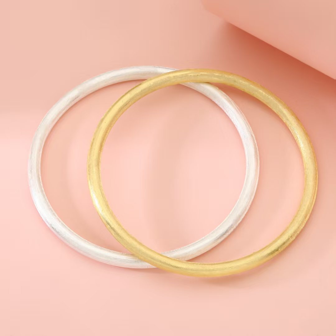 8940号足银999.9精致古法拉丝丝绒闭口手镯金色银色气质高级感