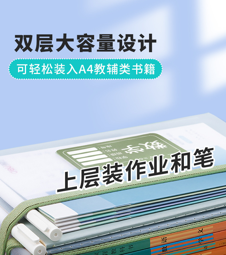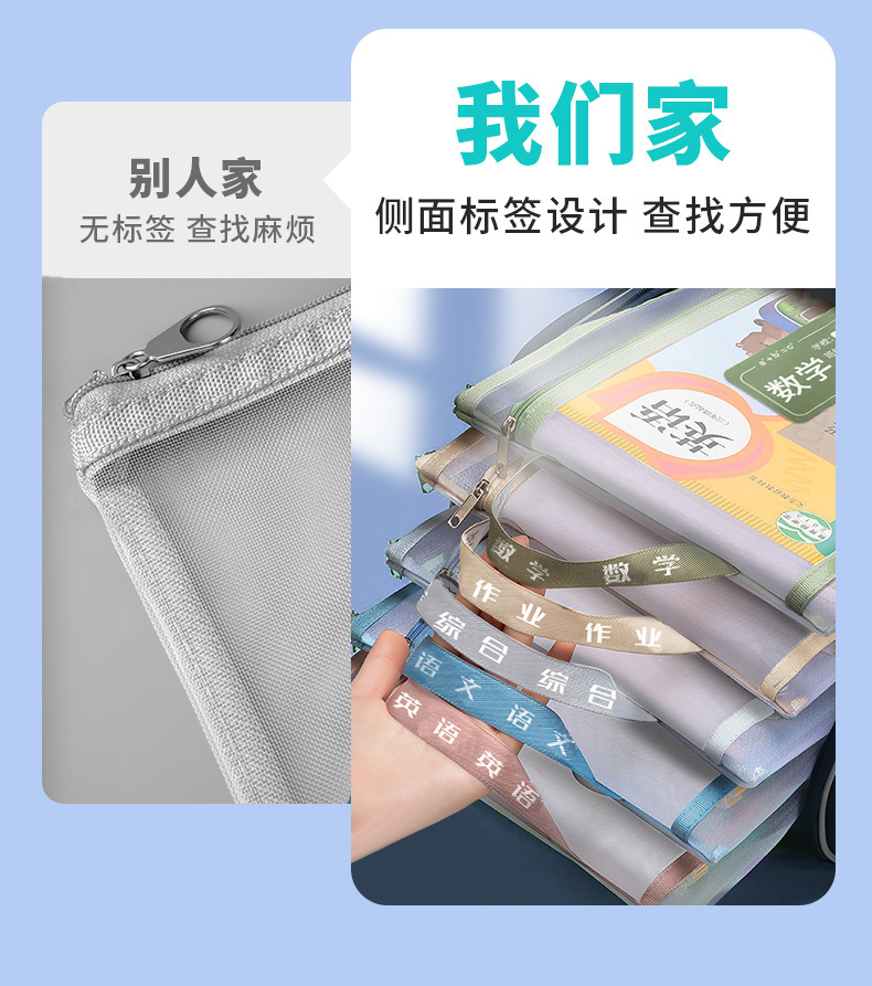 学科科目分类文件袋拉链式双层大容量小学生用资料书本课本分科袋