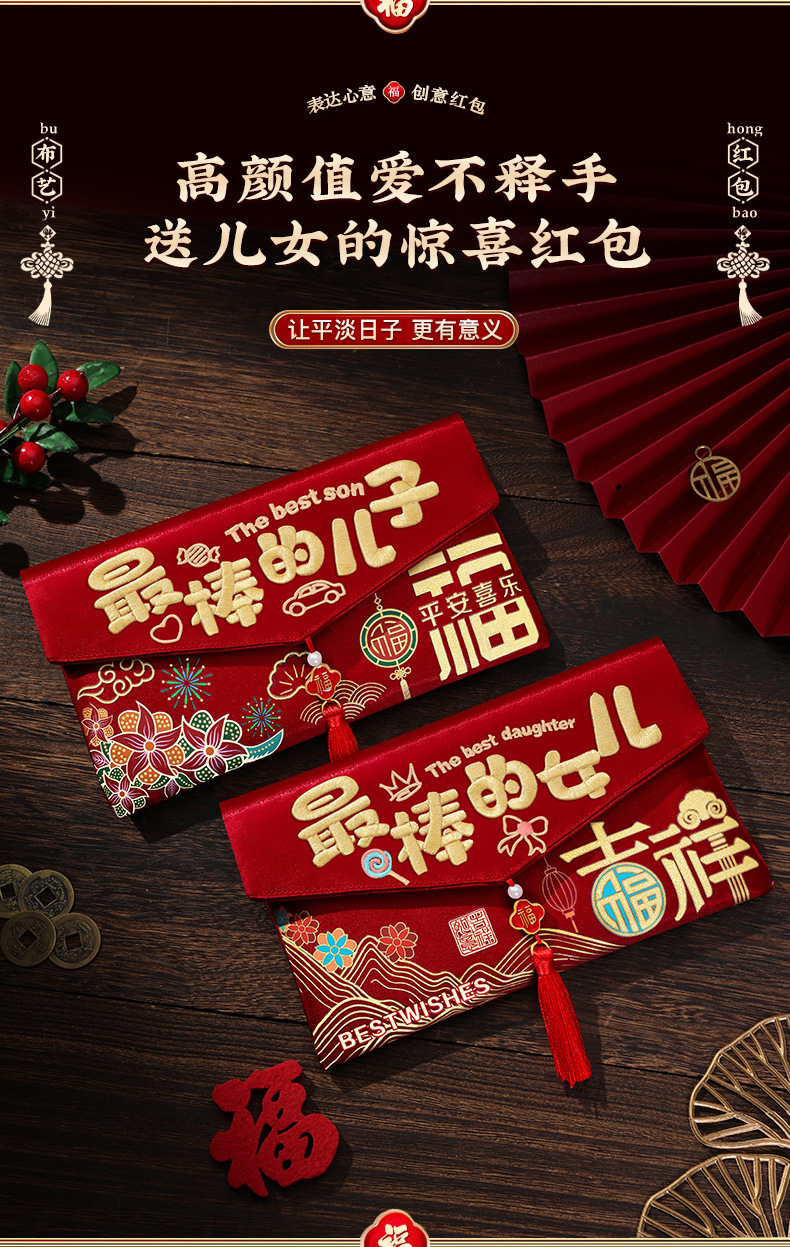 马年红包2026新款最棒的儿子女儿新年利是封过年春节刺绣压岁钱袋