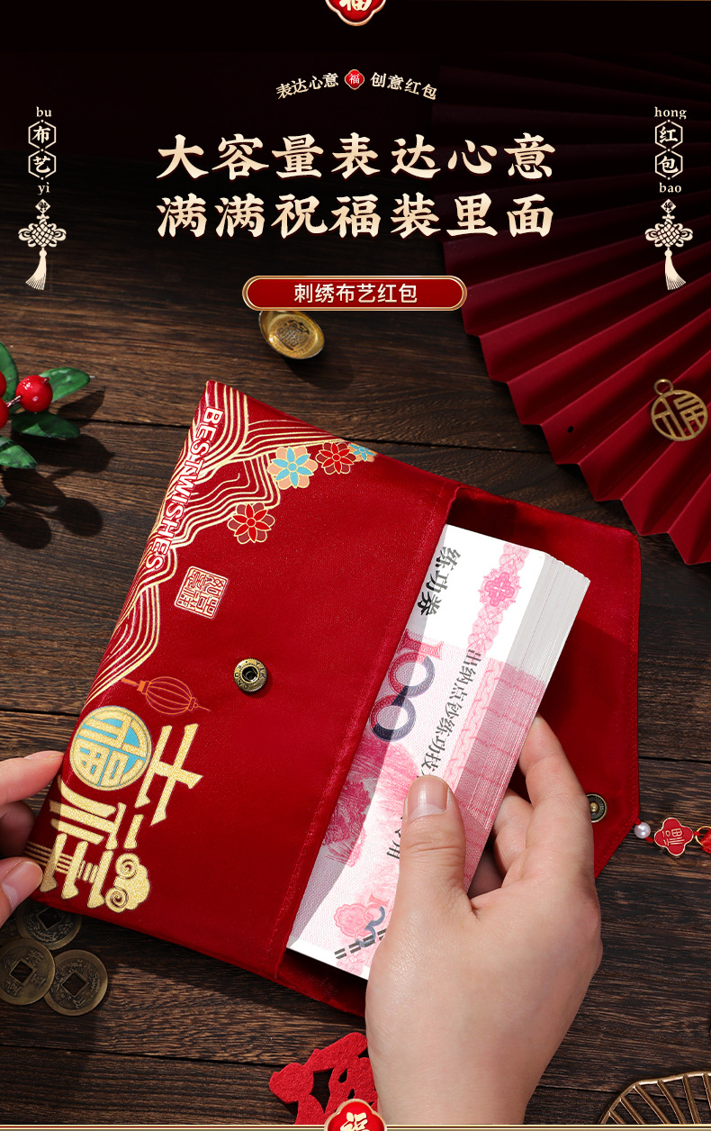 2026马年新款刺绣布艺红包袋春节过年儿童压岁钱包新年利是封批发