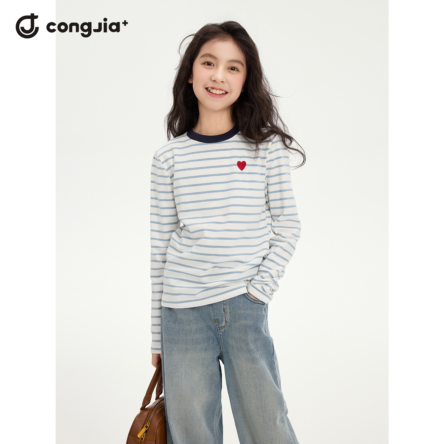 女の子春秋シンプルデニムパンツ2025秋新作子供中高生カジュアル万能ワイドストレートパンツ