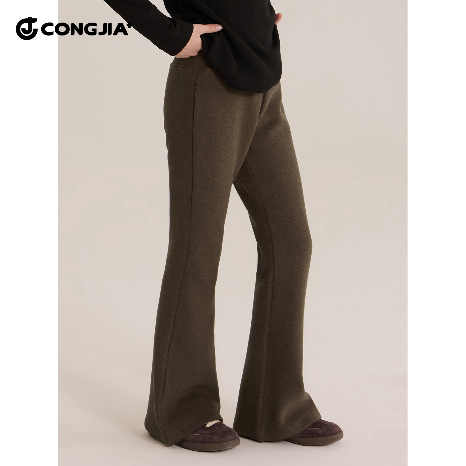 女童高弹加绒喇叭裤2025秋冬新款儿童中大童高腰修身微喇显瘦裤子