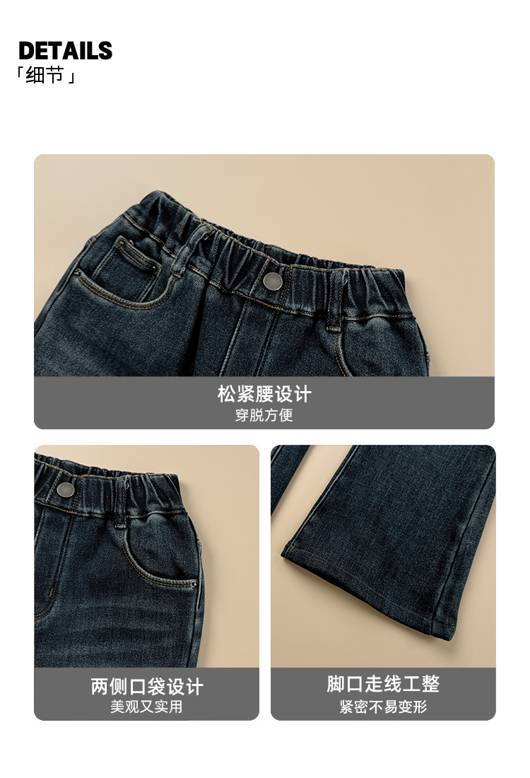 女童加绒牛仔喇叭裤2025冬装新款儿童美式复古宽松加厚休闲阔腿裤