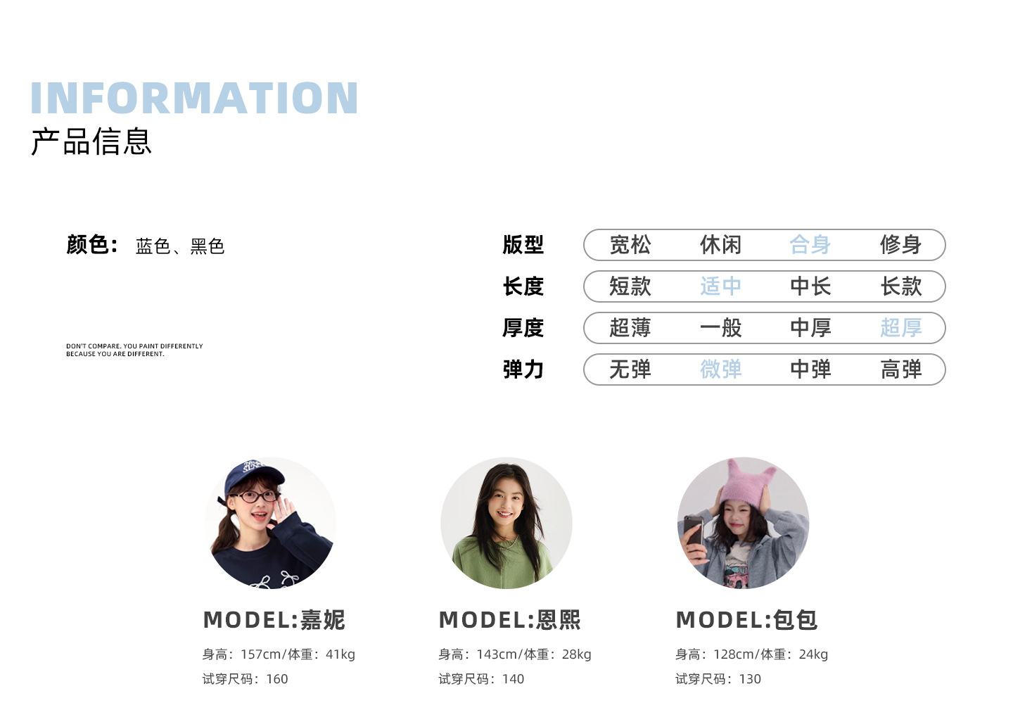 适合身高 130cm,140cm,150cm,160cm,170cm