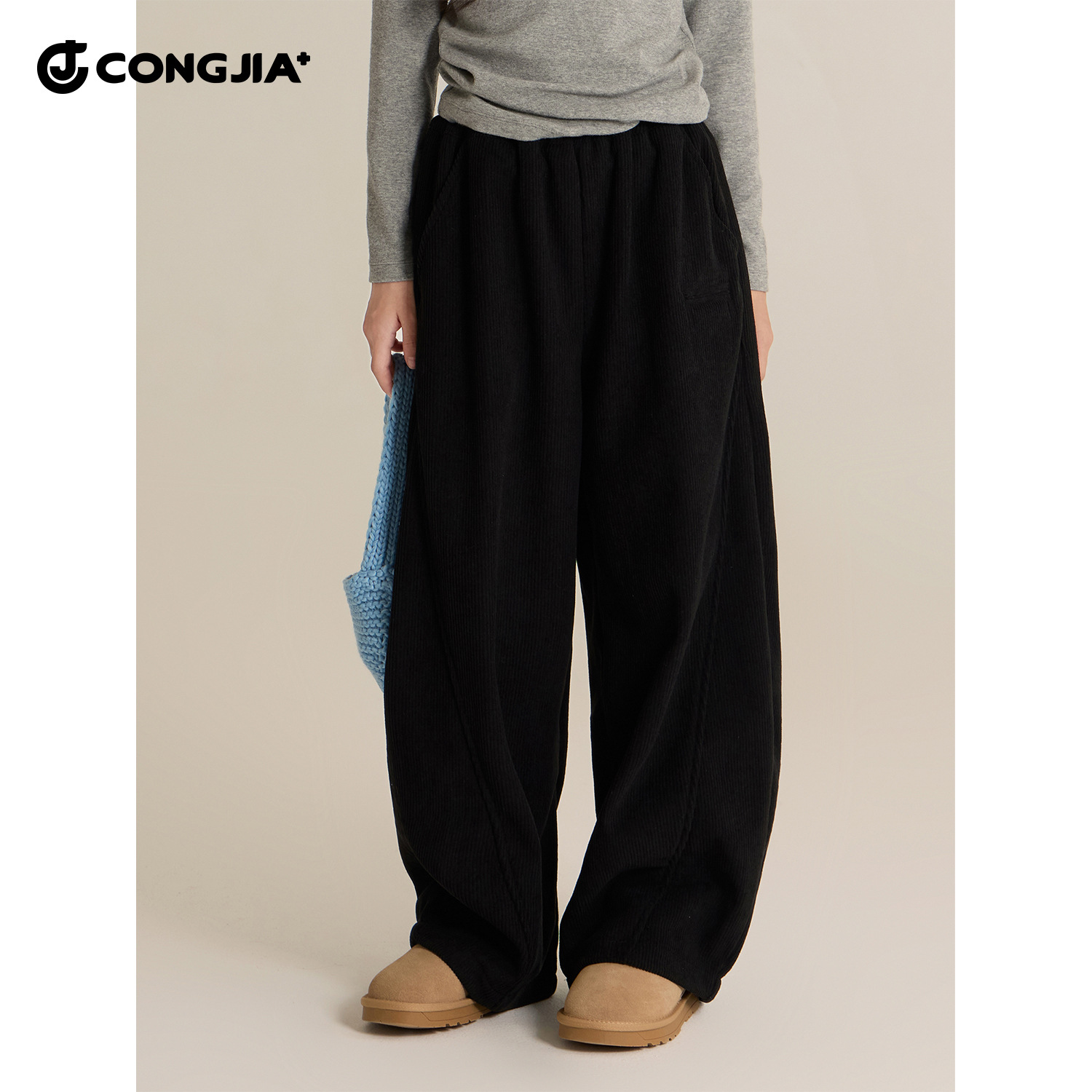 女童加绒糯米裤2025秋冬新款儿童高腰垂感阔腿裤加厚休闲宽松长裤