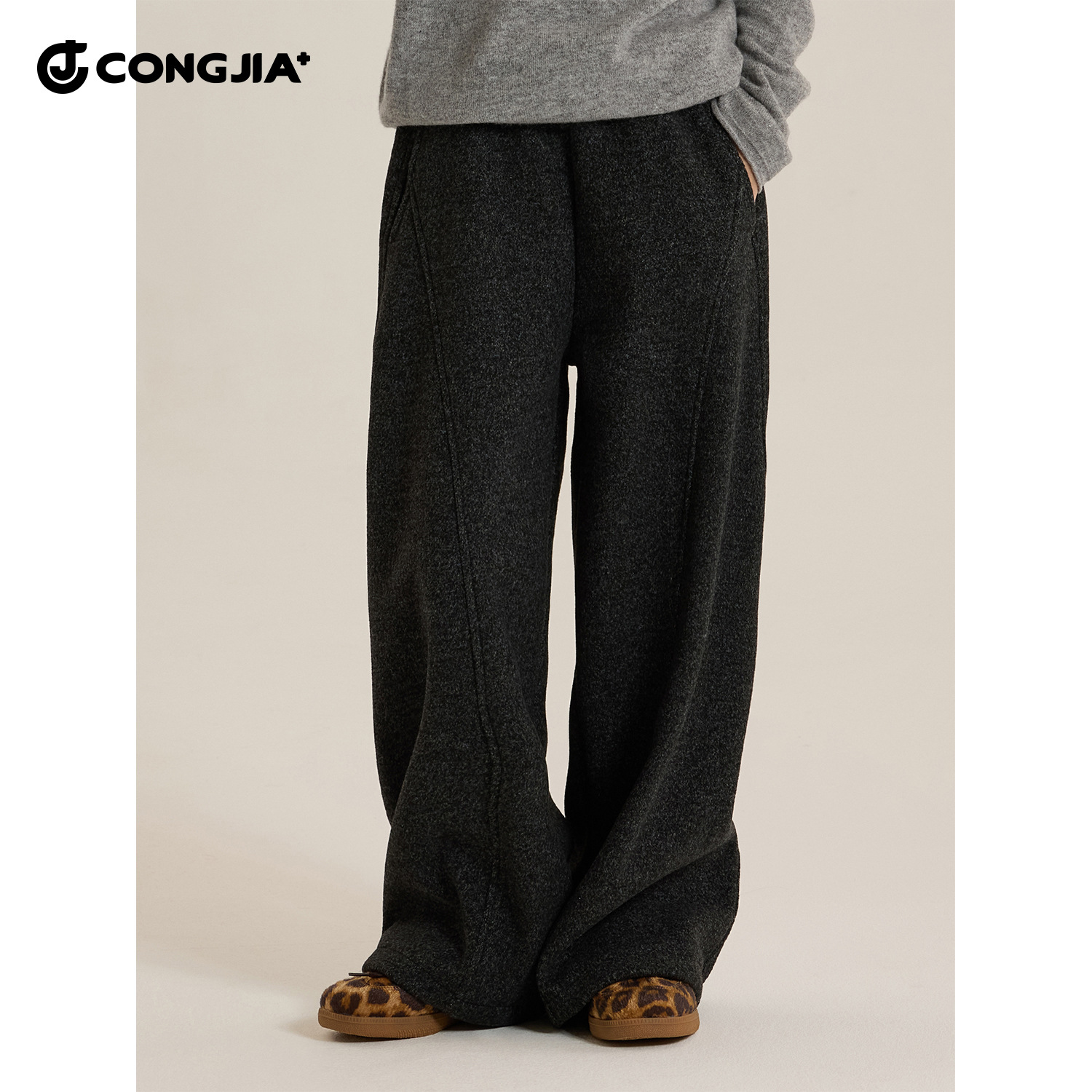 女童贝壳扣仿羊绒休闲裤2025冬装新款儿童加厚保暖洋气阔腿直筒裤