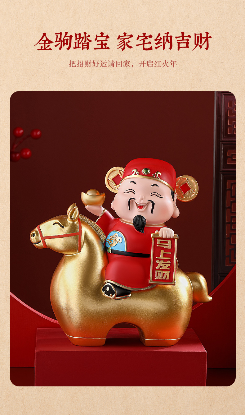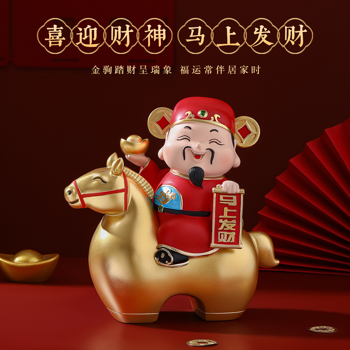 生肖马年迎财神国潮摆件家用客厅办公室桌面装饰招财乔迁新居礼物