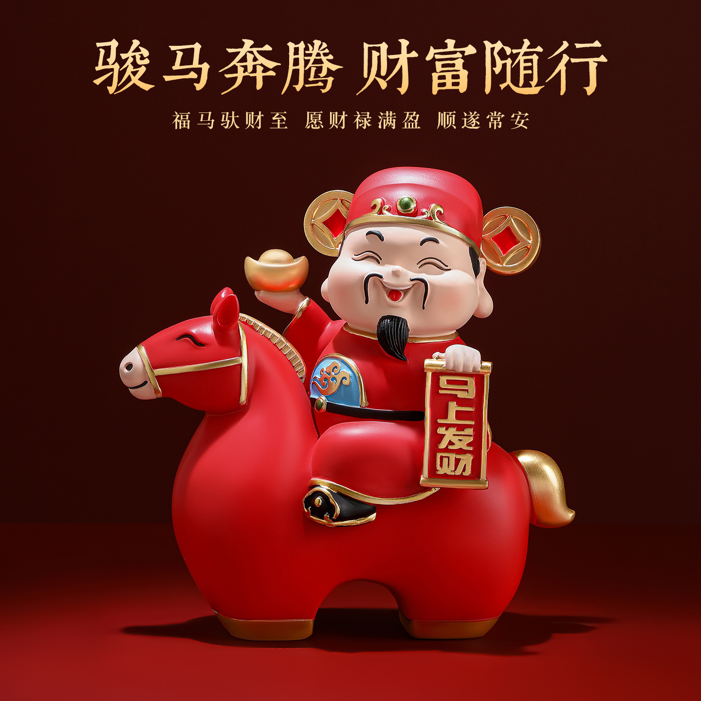 新款马上发财神爷摆件家居办公室桌面装饰品2026马年招财吉祥礼物