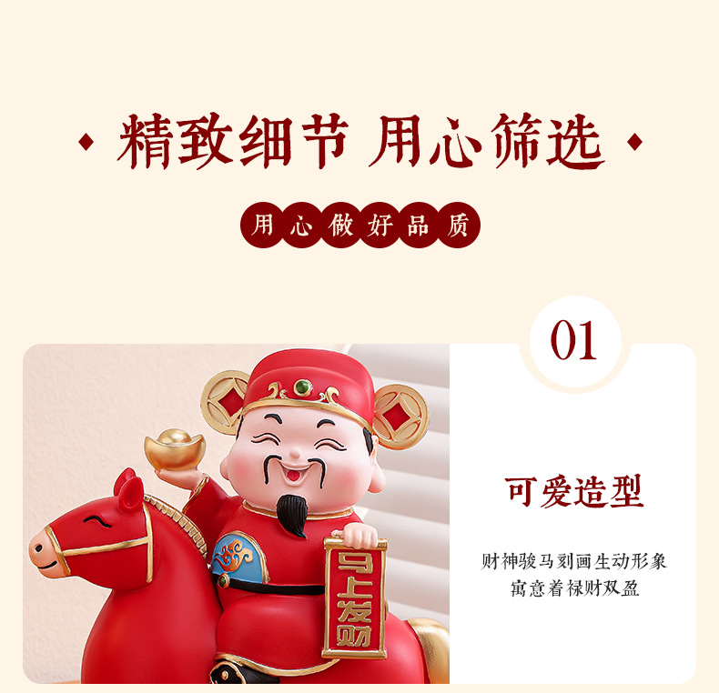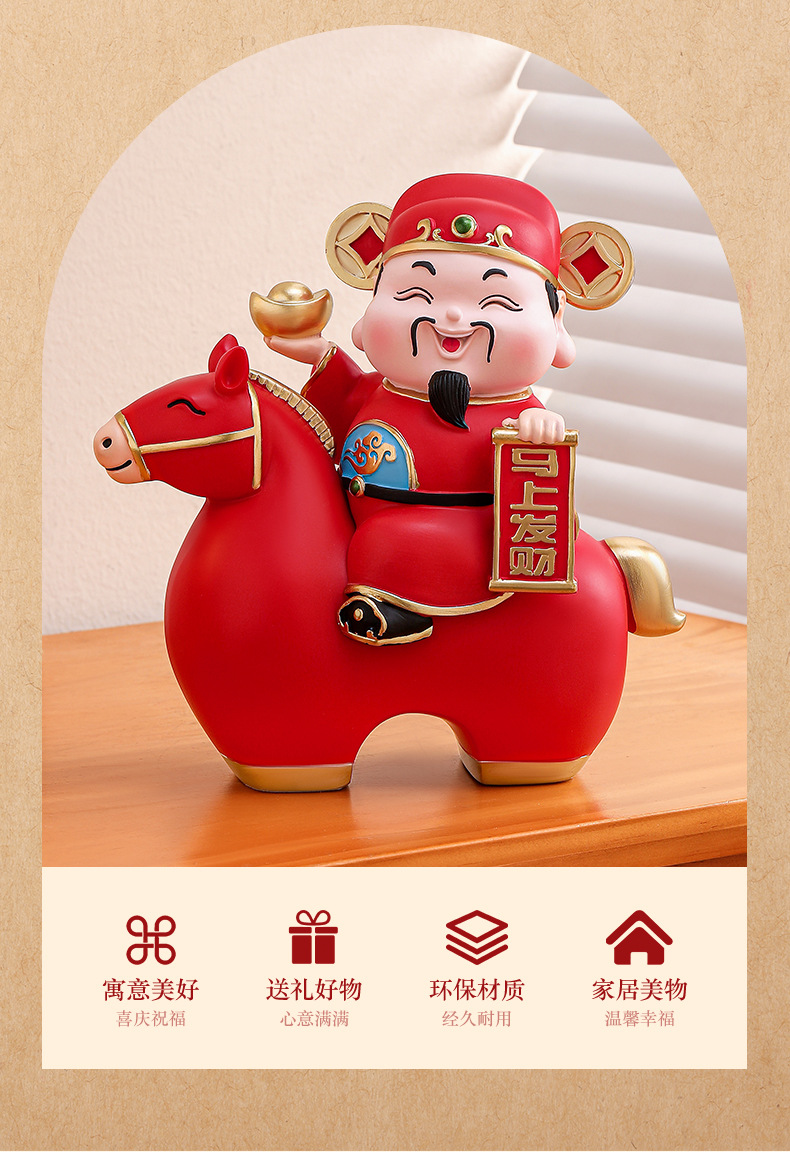 原创新款马上发财财神爷摆件家居办公室桌面装饰品新年喜庆礼品