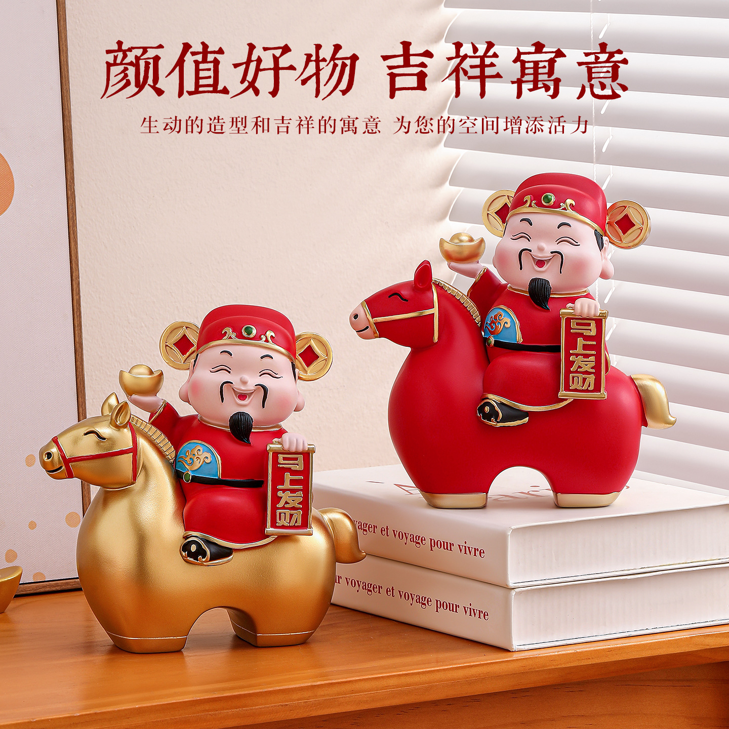 新款马上发财神爷摆件家居办公室桌面装饰品2026马年招财吉祥物
