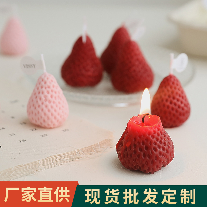イチゴの香りのキャンドル 大豆ワックスの香り付き 誕生日プレゼント ギフトボックスセット 食品撮影用小道具 写真撮影用背景
