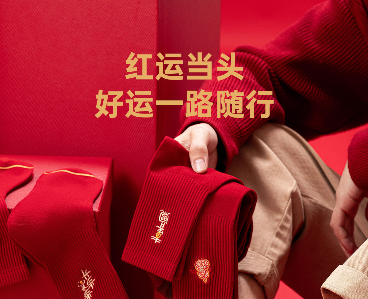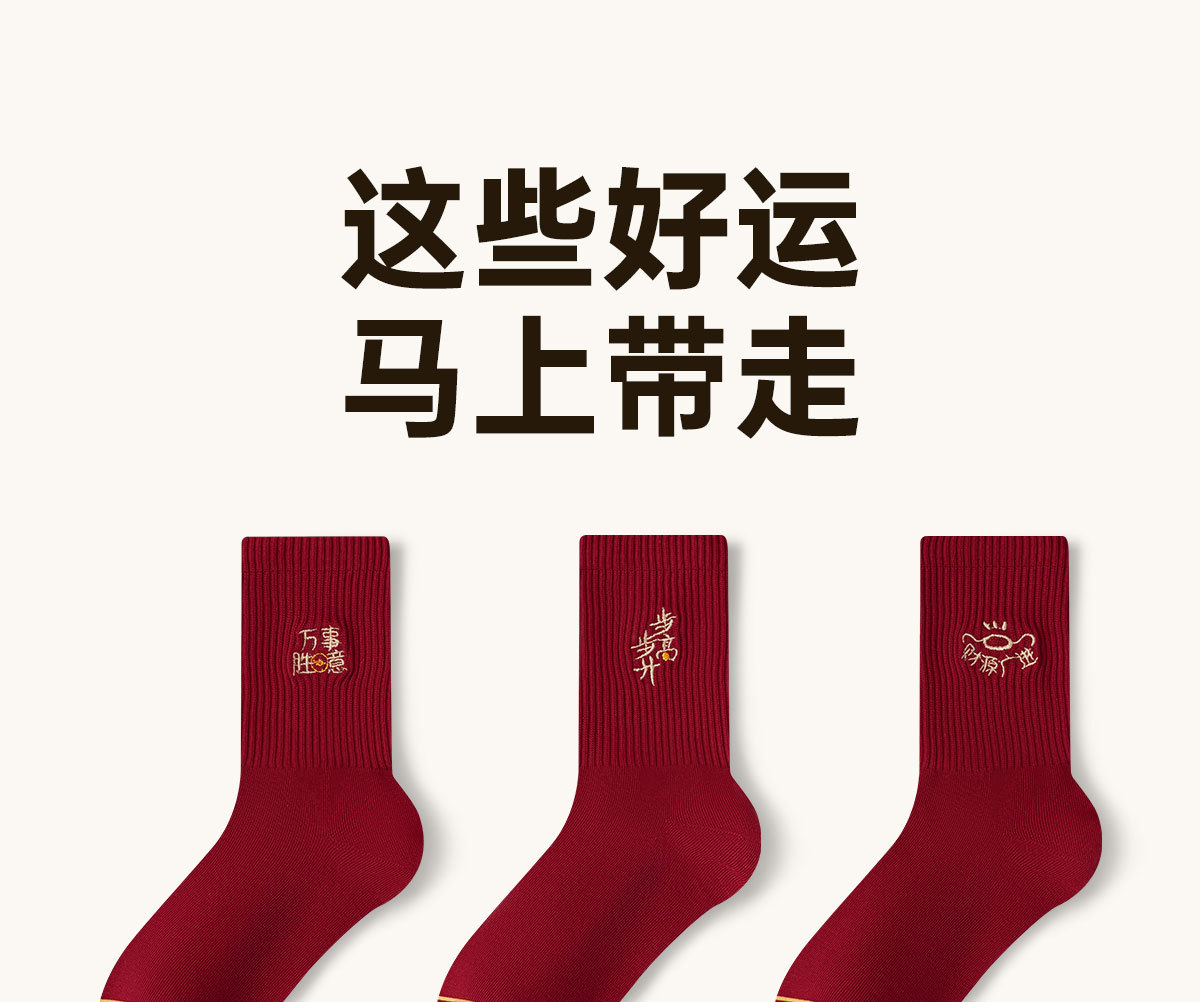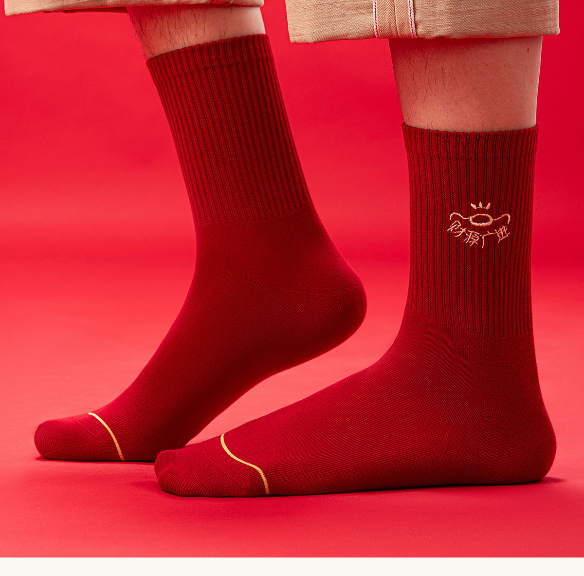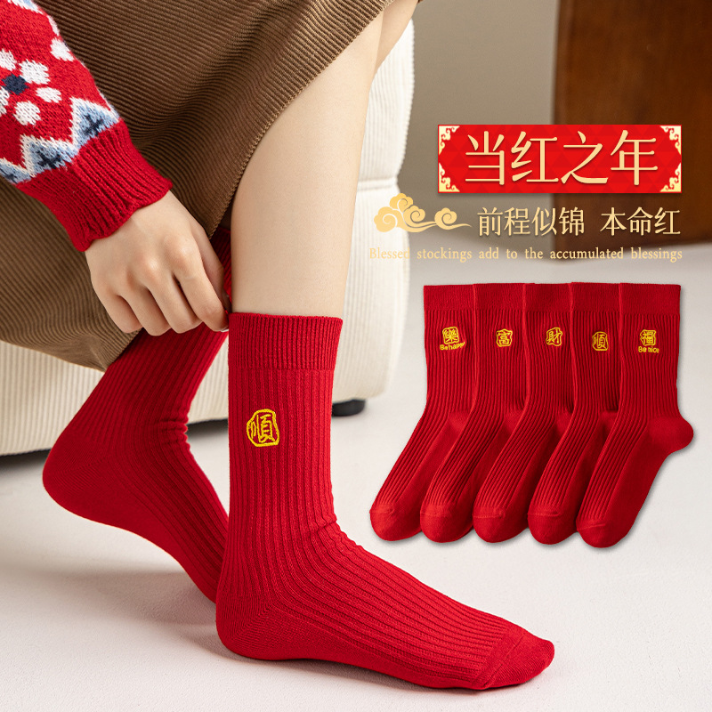 诸暨袜子红袜子本命年男生马年精梳棉中筒袜刺绣新年大红袜子百搭
