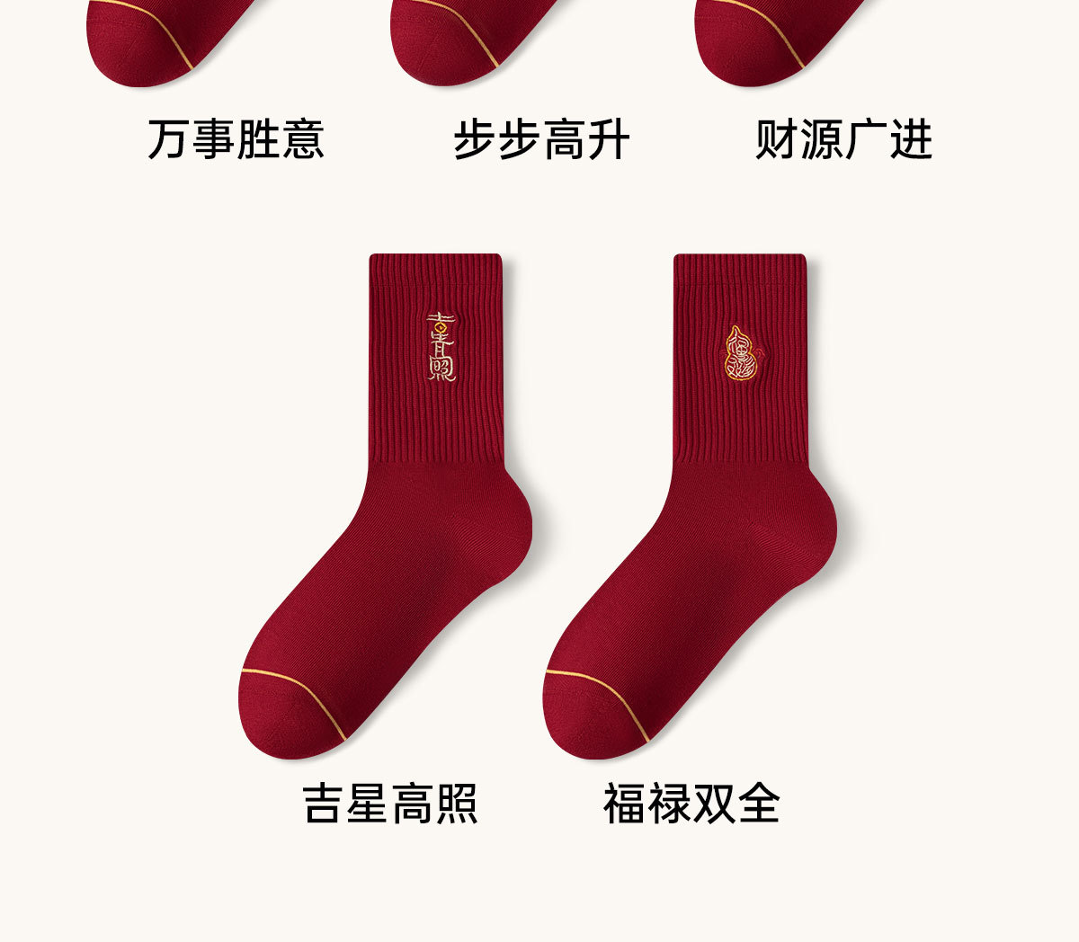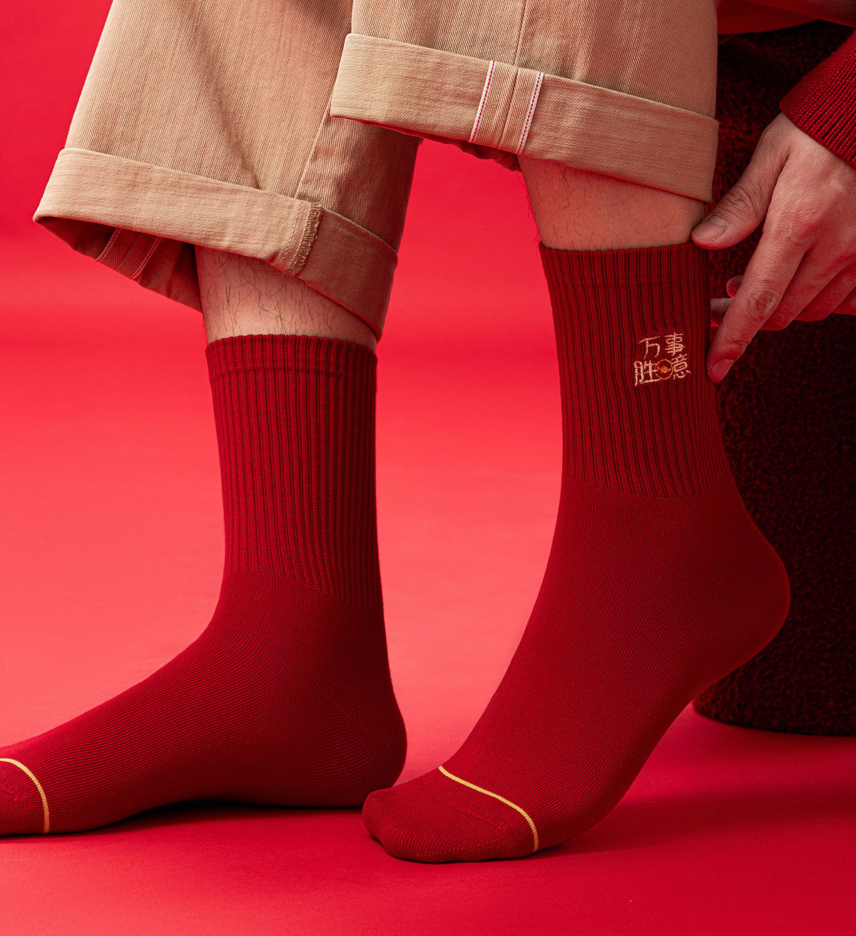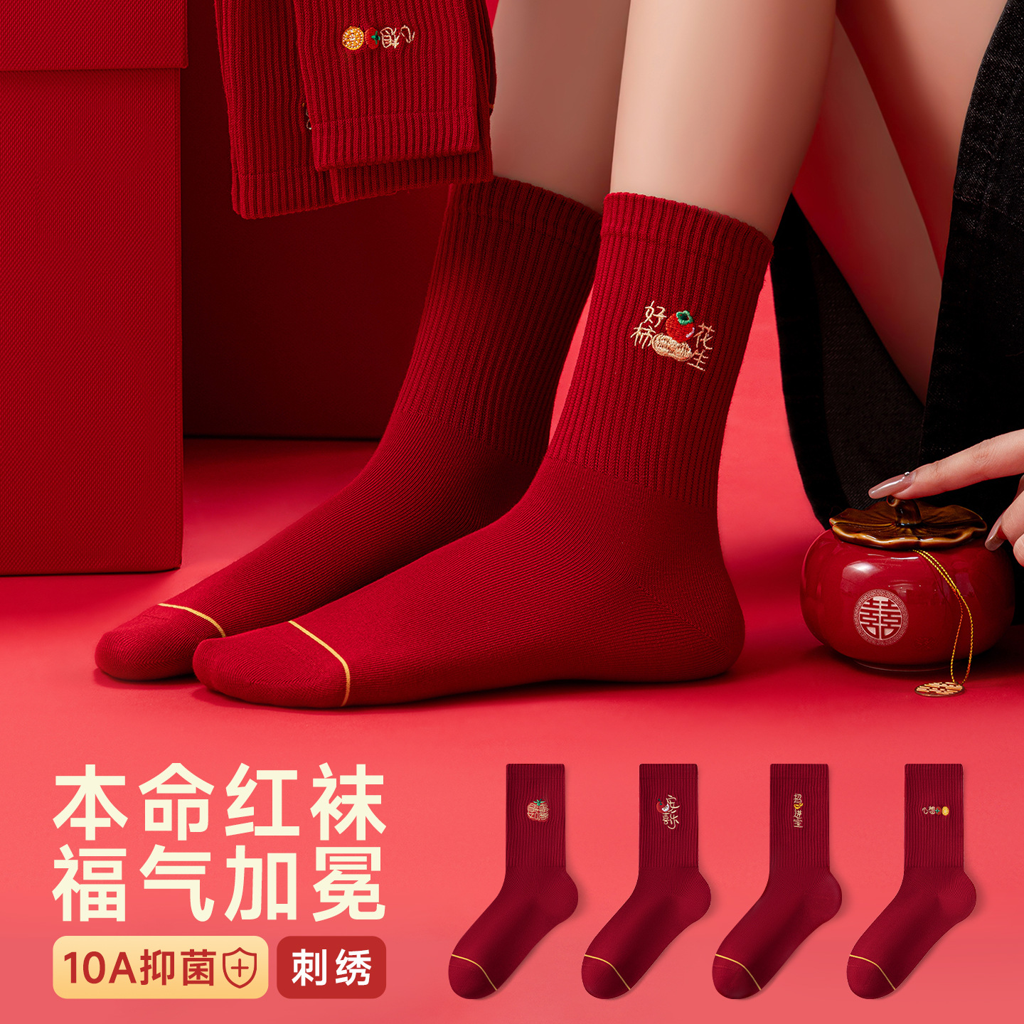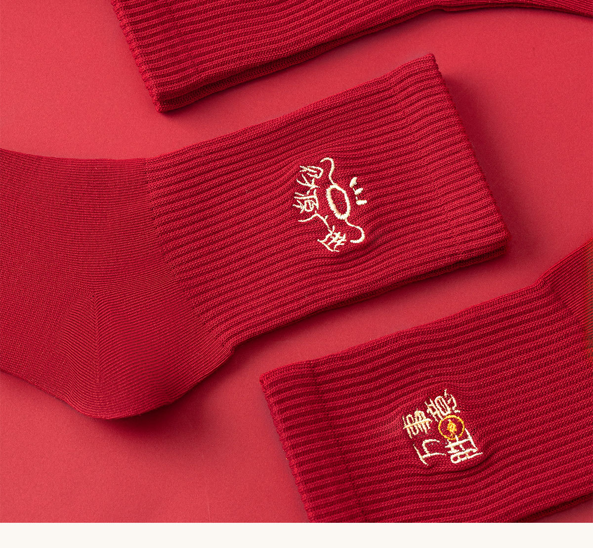 诸暨袜子红袜子本命年男生马年精梳棉中筒袜刺绣新年大红袜子百搭