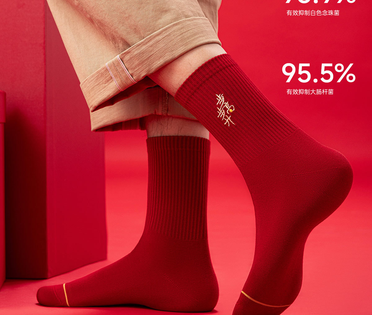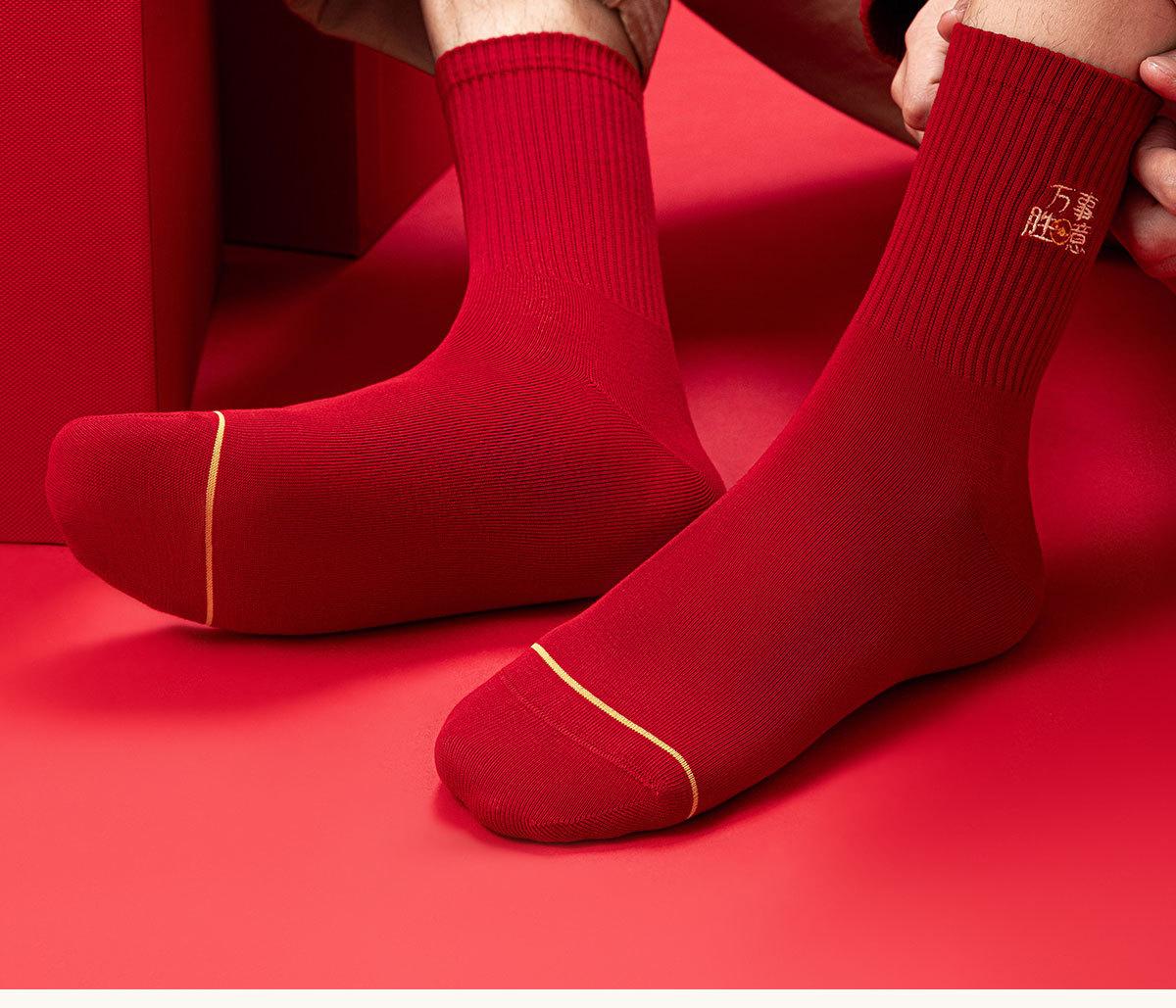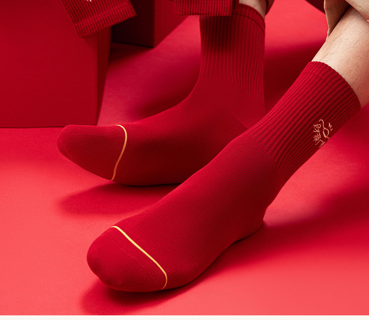 诸暨袜子红袜子本命年男生马年精梳棉中筒袜刺绣新年大红袜子百搭
