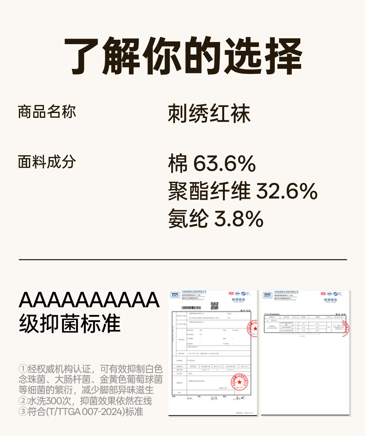 成分及含量 精梳棉63.6% 聚酯纤维32.6% 氨纶3.8%