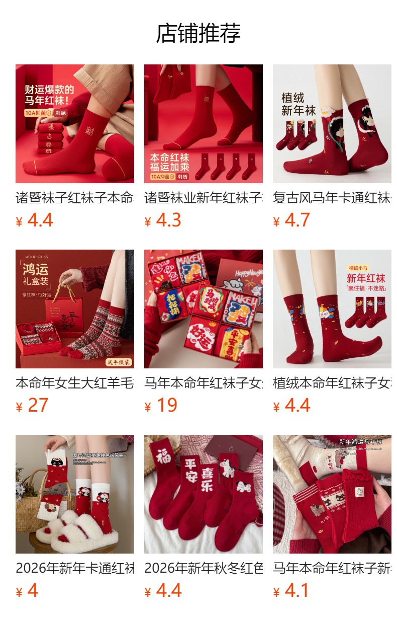 本命年袜子男女同款纯棉中筒袜2026马年情侣结婚大红色袜无骨批发