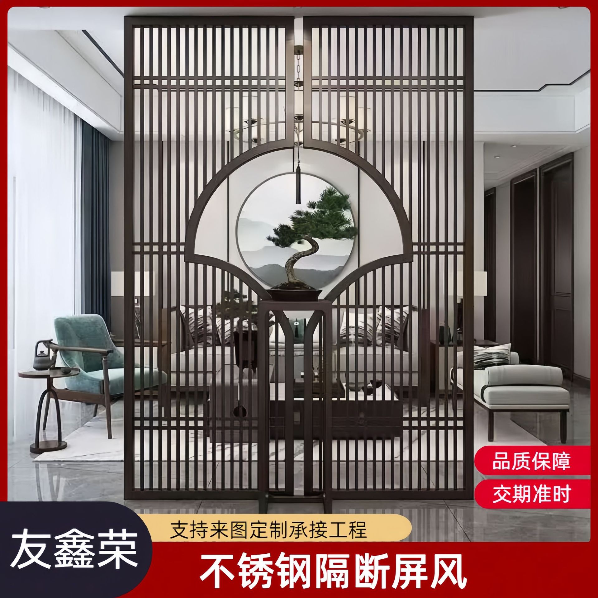 ステンレス鋼の岩のスクリーン金属鉄スクリーンリビングルームオフィスパーティション新中国風の玄関格子中空装飾