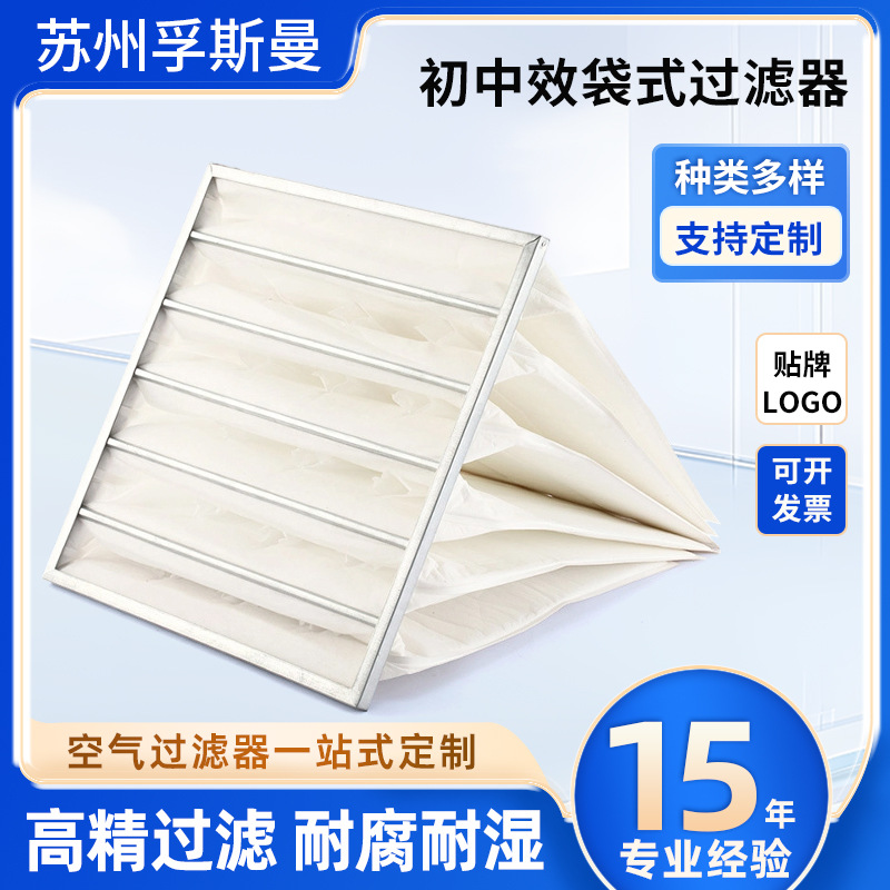 热压袋过滤器 中效等级玻纤袋 常规尺寸空气过滤器通风管道拦截
