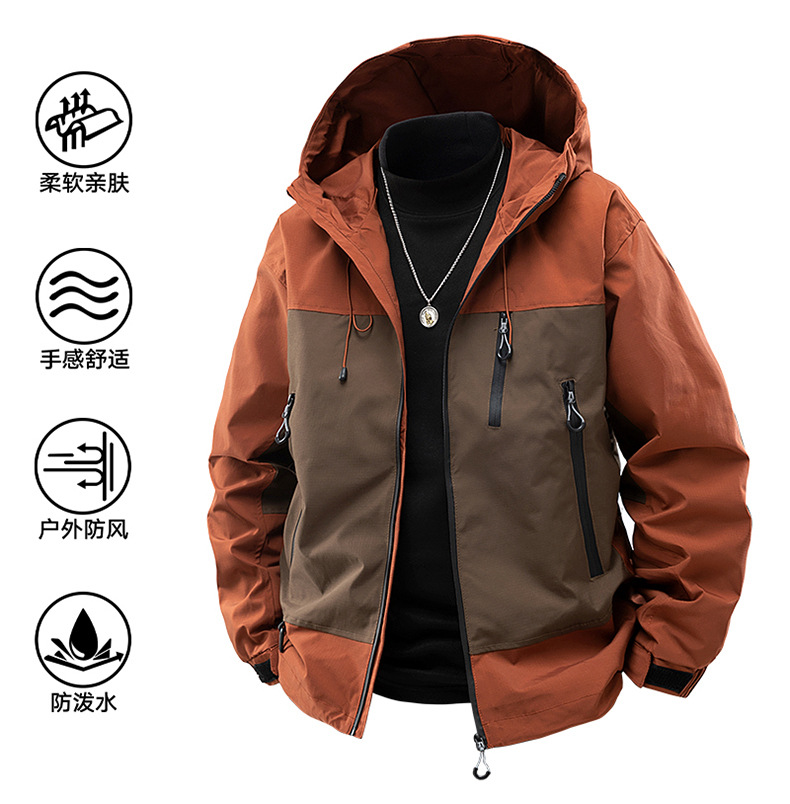 啄木鸟春秋季新款拼色男士连帽青年户外运动休闲夹克百搭男款外套