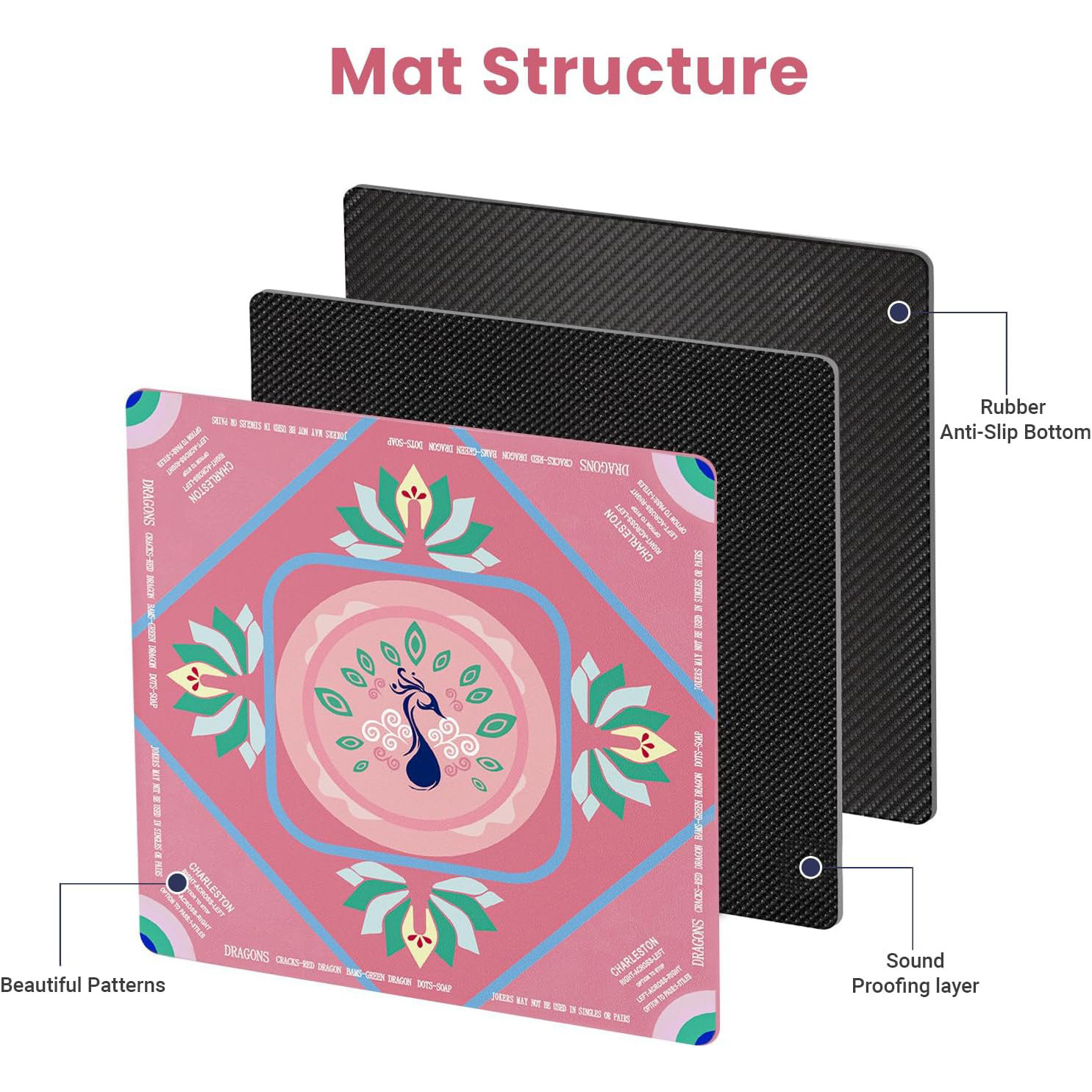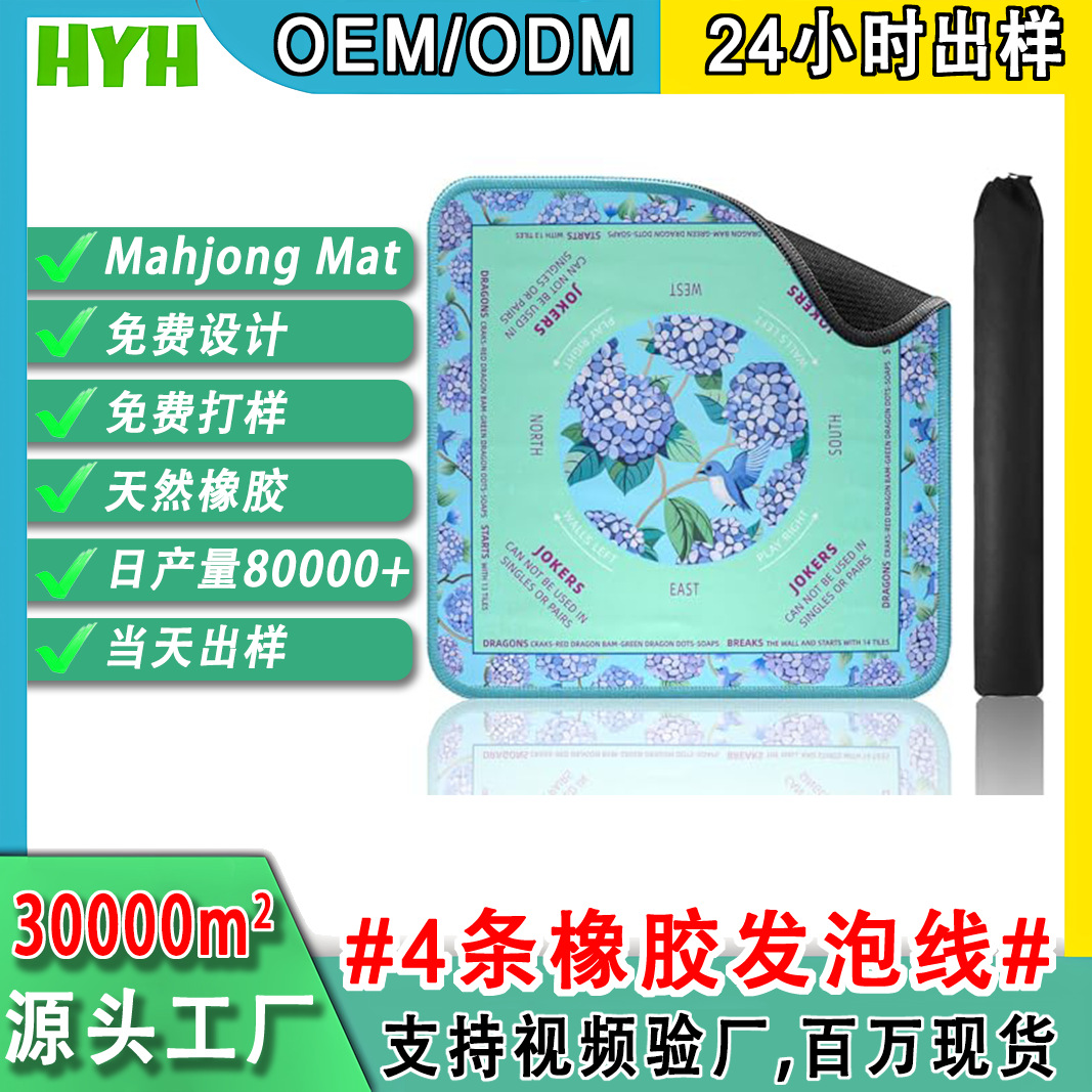 美国热销系列Mahjong Mat橡胶防滑降噪麻将桌垫批发包设计无折痕